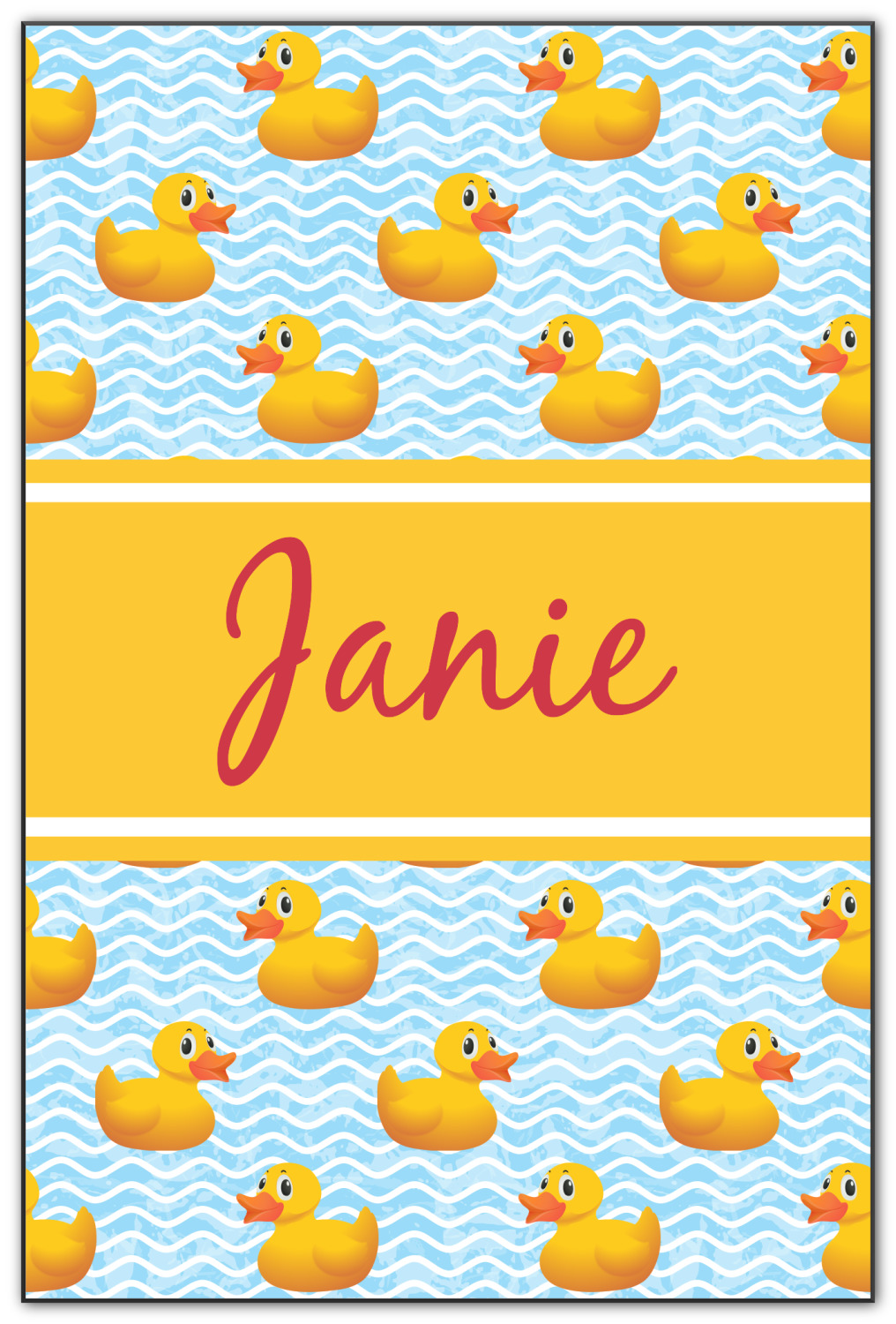 Rubber Duckies are as popular as ever. Our rubber duckie design features traditional yellow rubber duckies on a waves background. The duckies are floating around in water. Cute, adorable and simply precious are words that come to mind when looking at this design.