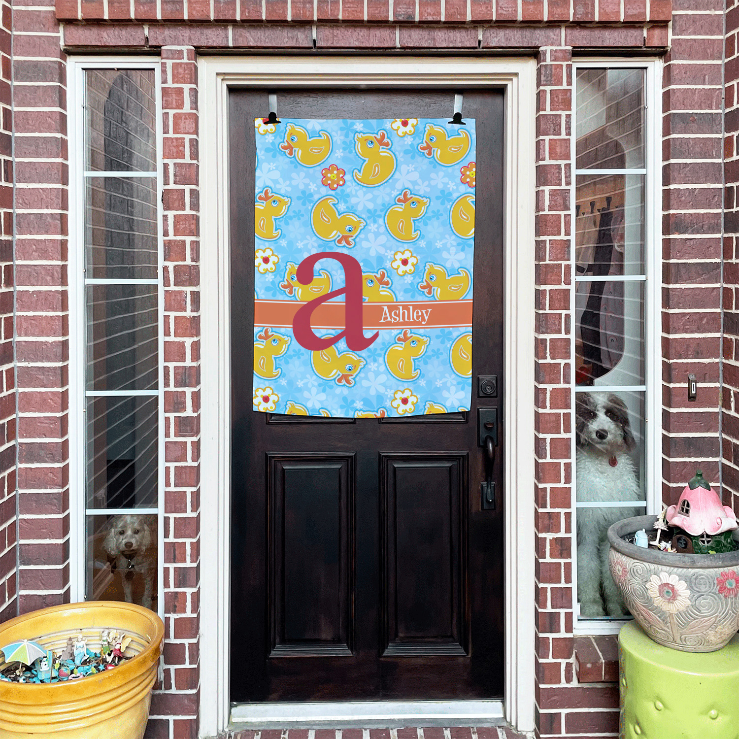 Made from heavy weight polyester fabric, these flags can be printed on one or both sides. They measure 28" wide by 37" long. They can be made to welcome guests, celebrate holidays, show your pride and so much more!