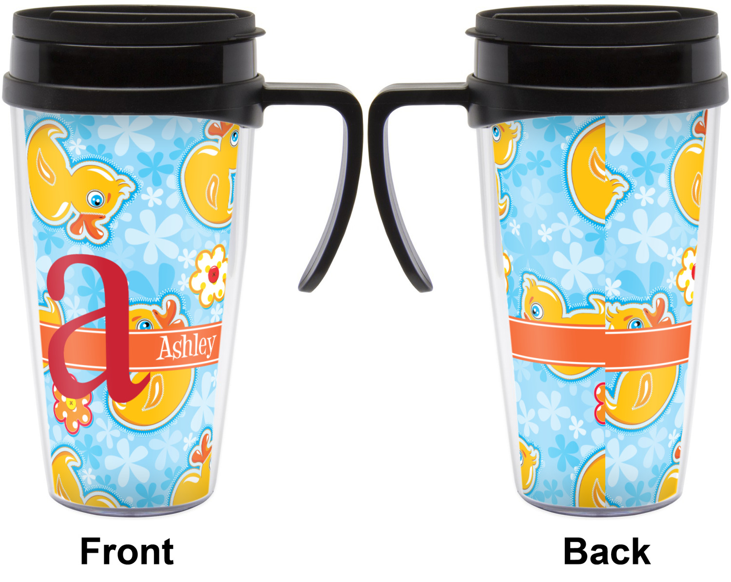 Keep your drink secure while on your daily commute with one of our personalized travel mugs! These travel mugs will add a splash of color and creativity to your kitchen counter-top, car cup holder, office desk, or wherever you choose to place them! With these custom mugs, you'll never have to settle for a boring, run-of-the-mill travel mug.