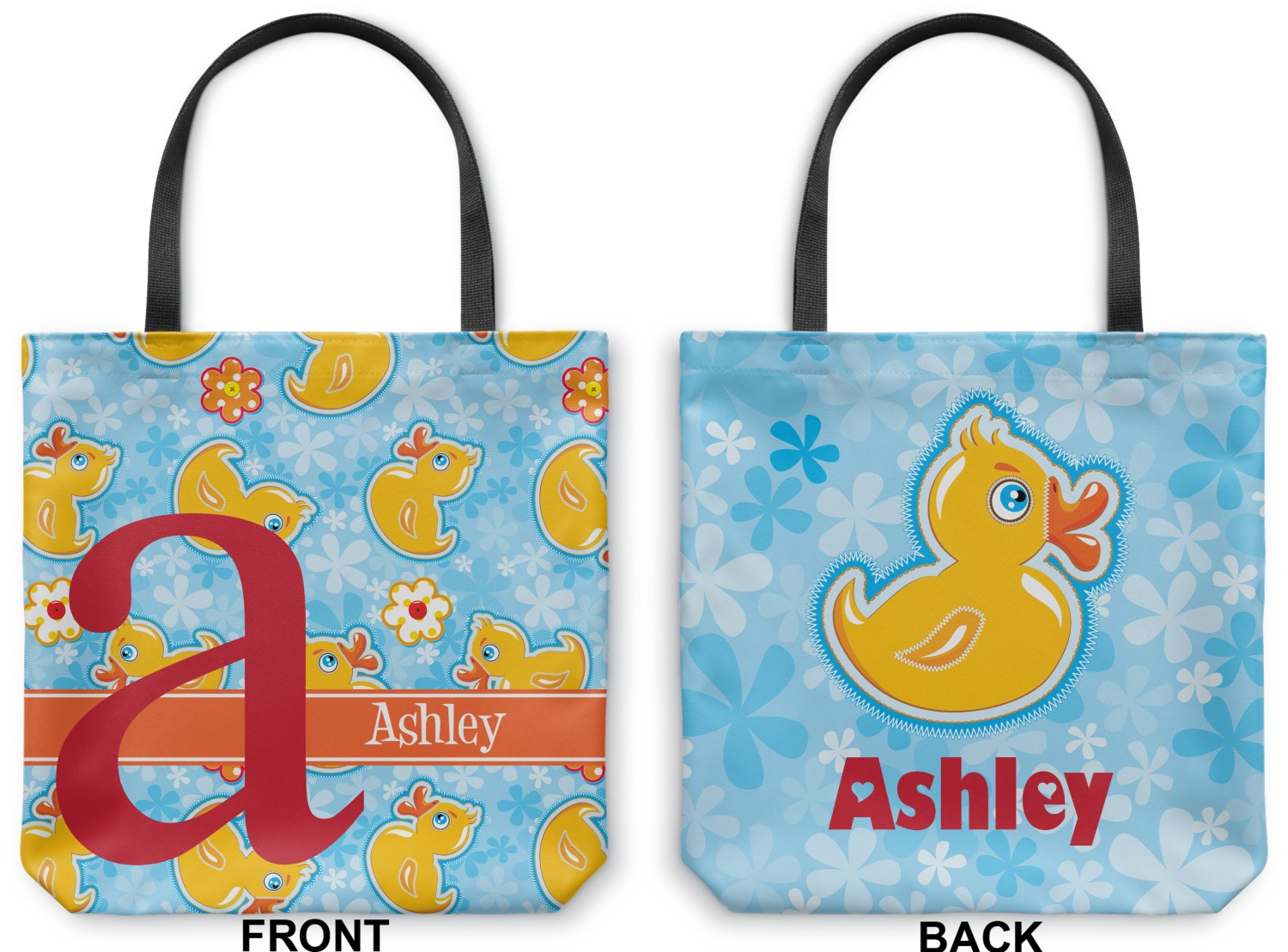 Our totes are made right here in the USA. Your design is printed on canvas fabric; the fabric is then cut and sewn on the sides and on the bottom to add an approximately 3.5 inch gusset. Black cotton handles are sewn in and reinforced. Your tote has a designs on both sides - the designs can be the same or different - the choice is yours. The inside of the tote has a black fused lining.