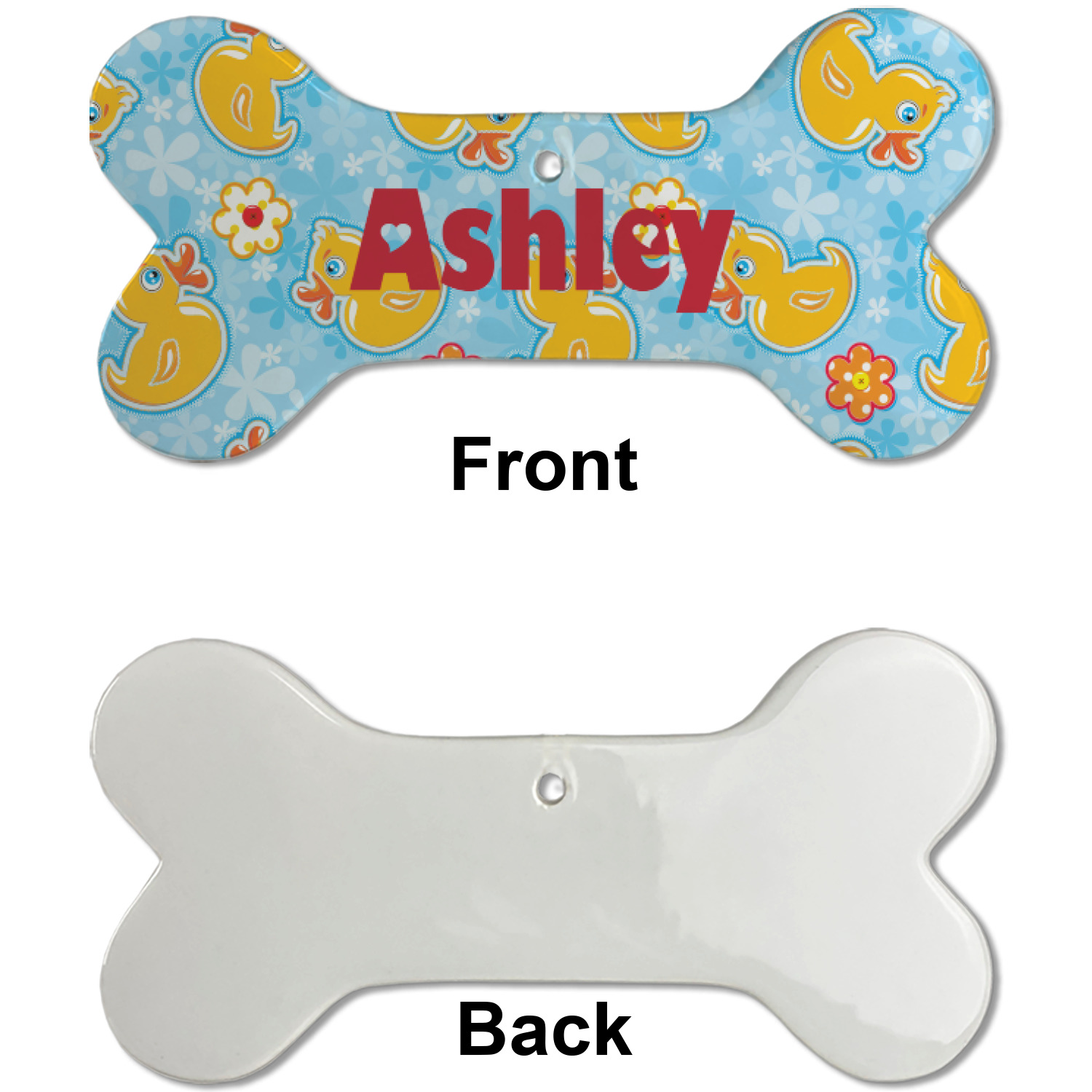 Our dog Christmas ornaments are a ceramic material with a bone-shaped structure hung horizontally. We offer two printing styles to personalize your furry friend's ornament! Choose a one-sided printing, perfect for wall decor, memorial accessory, or doghouse nameplate! Create a double-sided ornament perfect for adorning the Christmas tree. Each dog bone ornament is approximately 4.75" x 2.25" and is printed here in the USA.