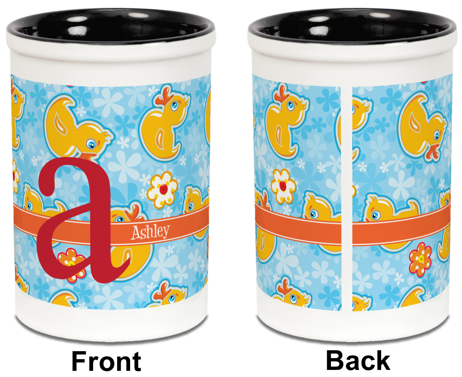Need help with keeping the workspace clean and tidy? Try using our customizable pencil holders! They're great desk accents for the office, kids desk, or even vanity mirror. Our custom pencil holders are ideal for holding pens, pencils, and even brushes to keep your area from any clutters. The best part about our custom desk pen organizers is the two-toned look! Choose one from either our black or blue interior and customize the outside of the pencil holder with your own personalized design! Use our online design studio to create logos, monograms, or even print a favorite photo to display on the cup holder! Create a cute pencil holder for the kid's desk, or add a cool design to hold any brushes. The options are endless!