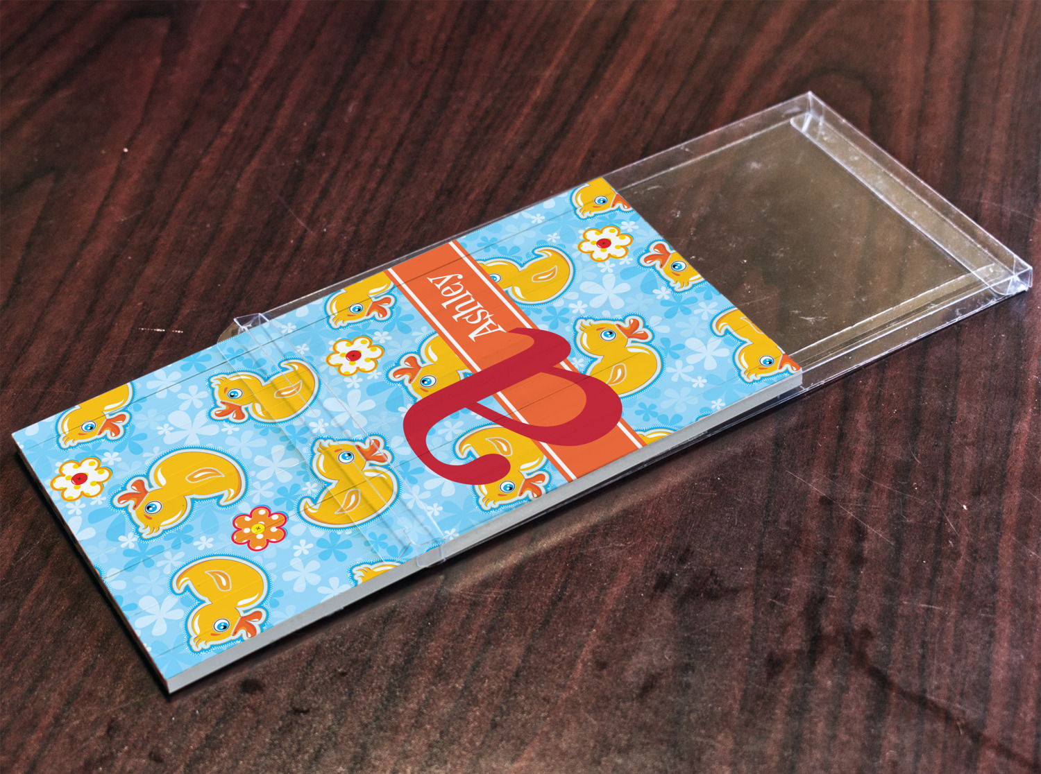 Your artwork / design is printed in full color across the top of all 13 pencils. The back and sides of the pencils are white. The pencils come in a clear plastic container / carrying case.