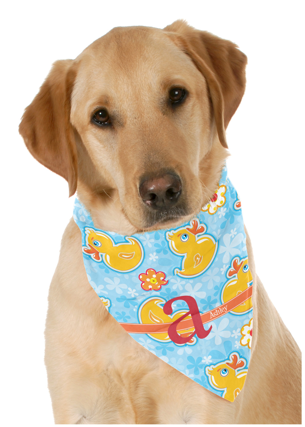 This beautiful pet bandana really is the perfect accessory. It is made from a silky feeling polyester and measures at approximately 23" x 23". Your personalization will be printed on a diagonal, so that you are able to read the personalization when folded into a triangle. This bandana fits best on large dogs, but can be folded smaller if there is no personalized text to fit smaller pets.