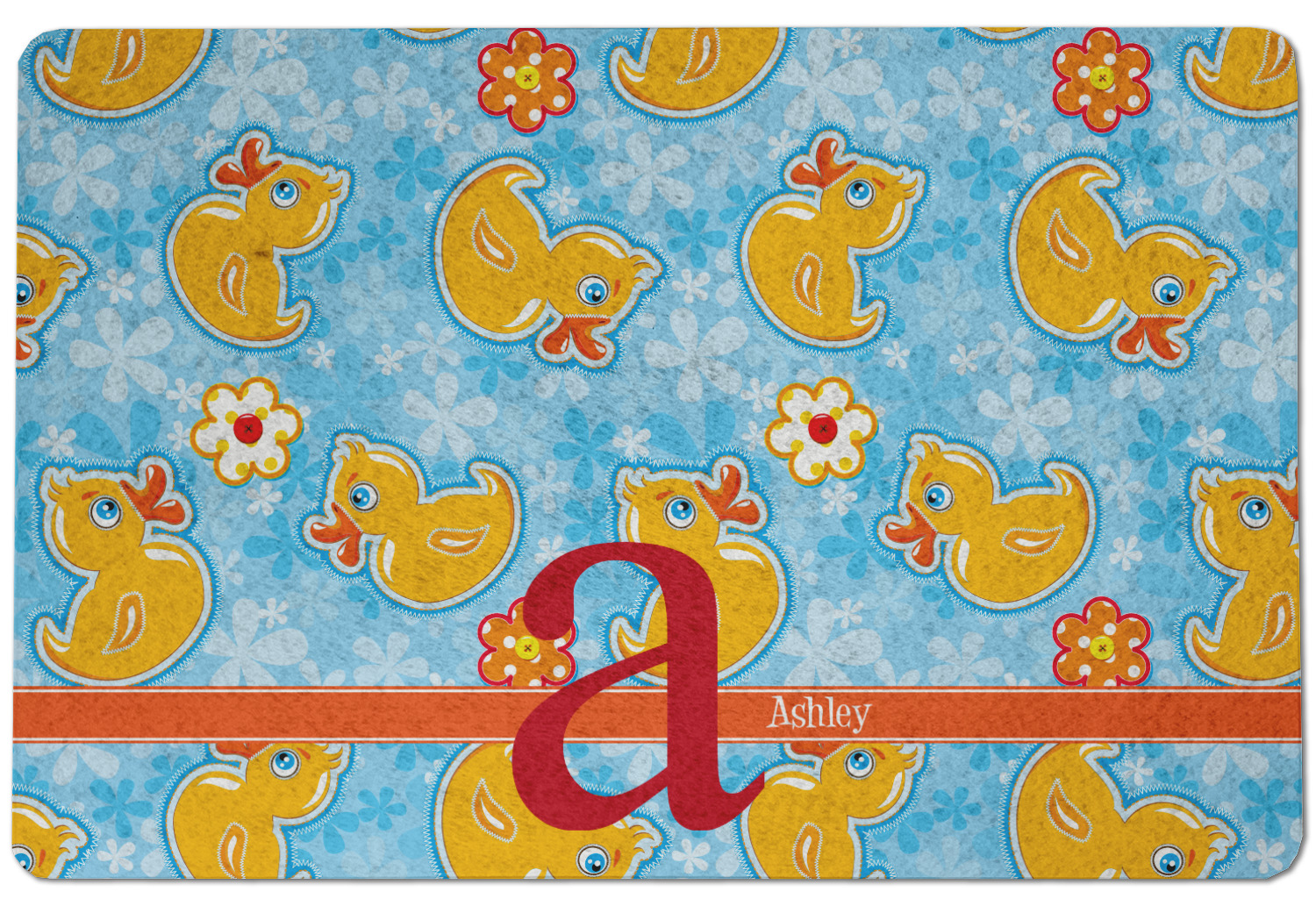 This duckie design is absolutely precious. The background is flowers in a lovely blue, while the foreground has duckies and flowers. The ducks and flowers look like they have been appliqued on to the fabric.
