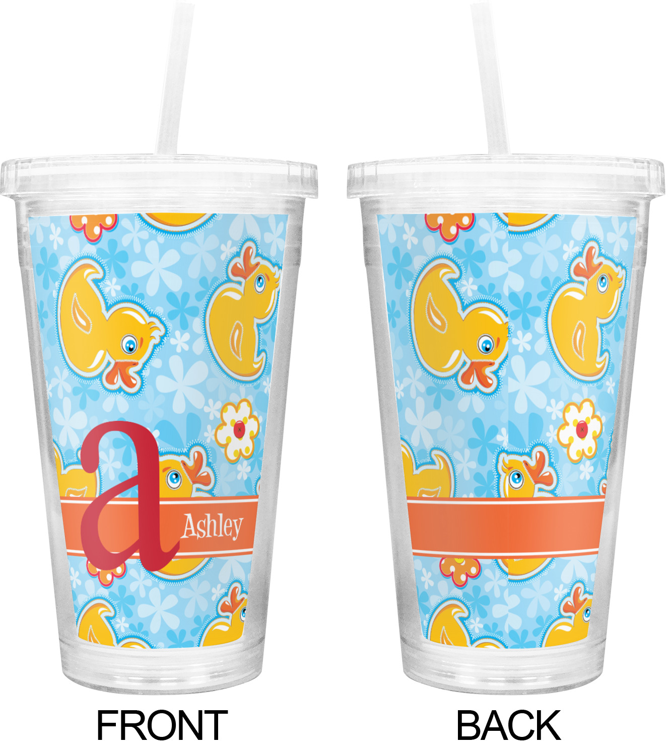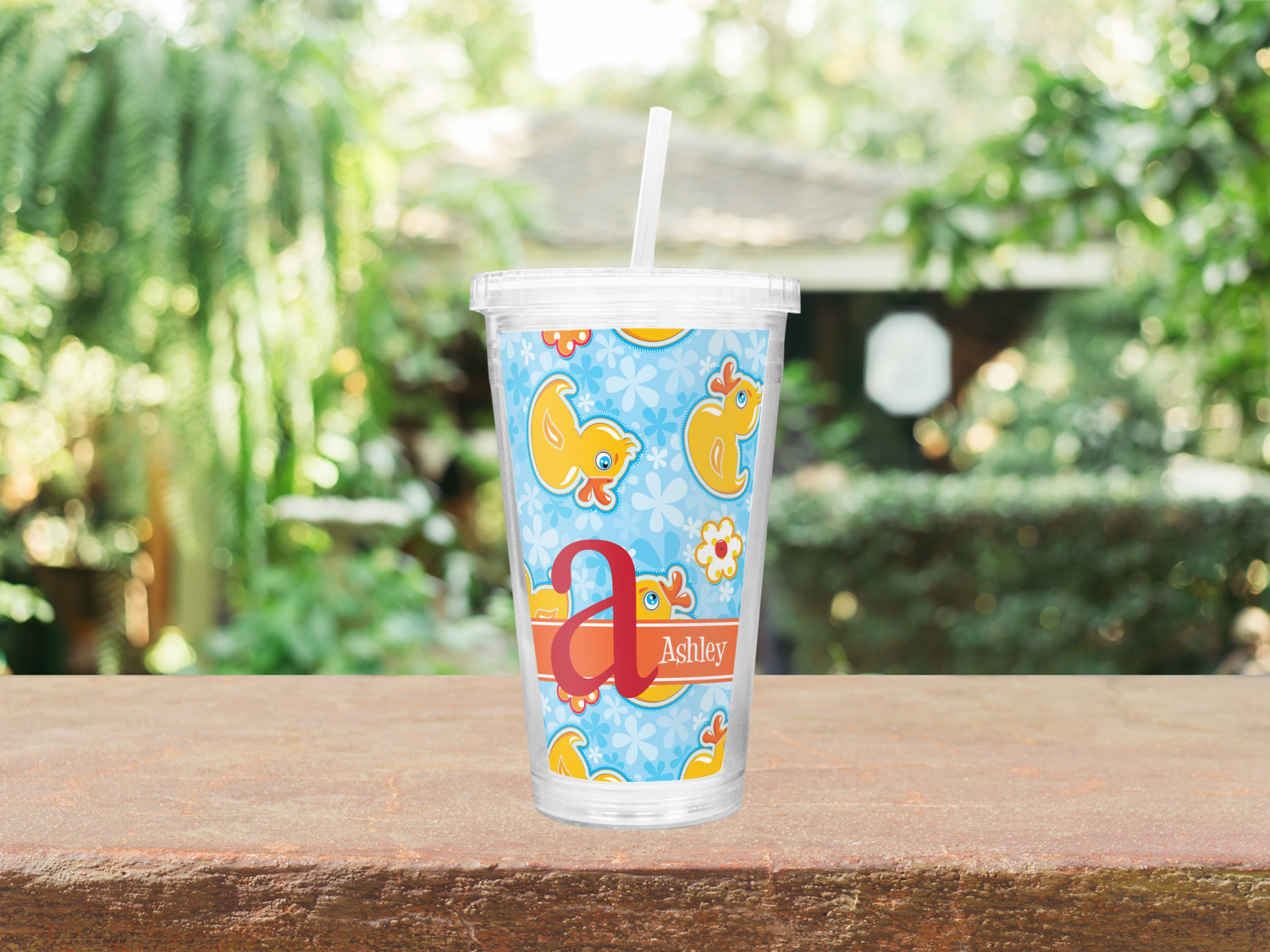 These tumblers are customized for you with a printed insert between the two walls of the cup. The lid screws on tight and helps to keep your drink cold.