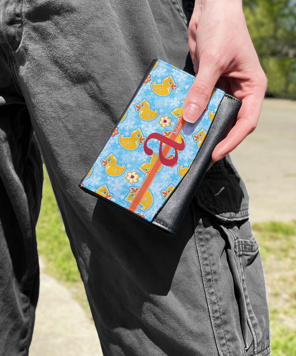 The compact size of this wallet - 5.5in wide, 3.5in tall and 0.75in thick when folded - makes it perfect to hold in hand and small enough to fit in a clutch or a normal size purse. The outside flap is customized with your choice of artwork and closes with a snap closure - with two different snaps to allow it to be adjusted when storing more items - to securely fasten the flap.