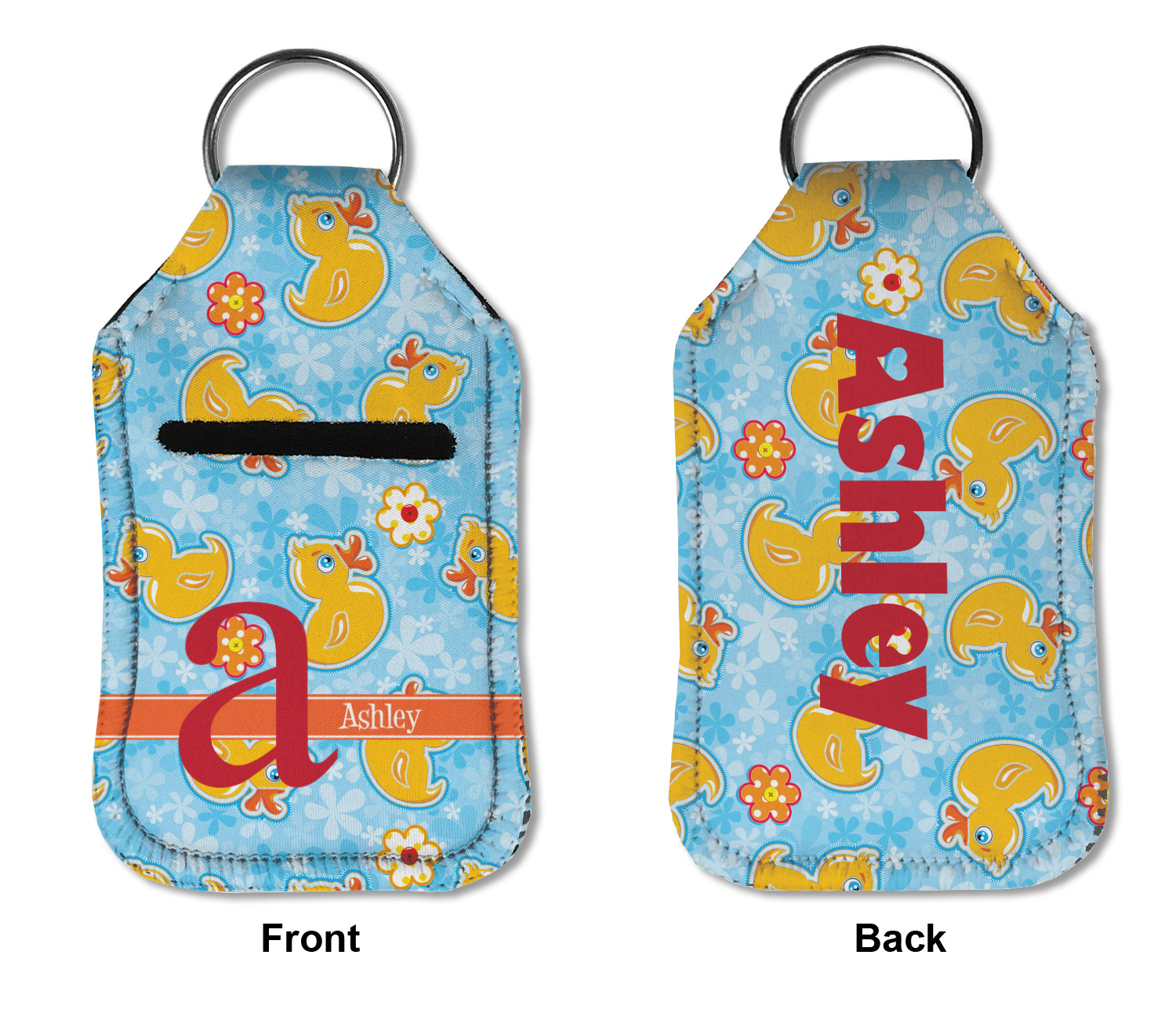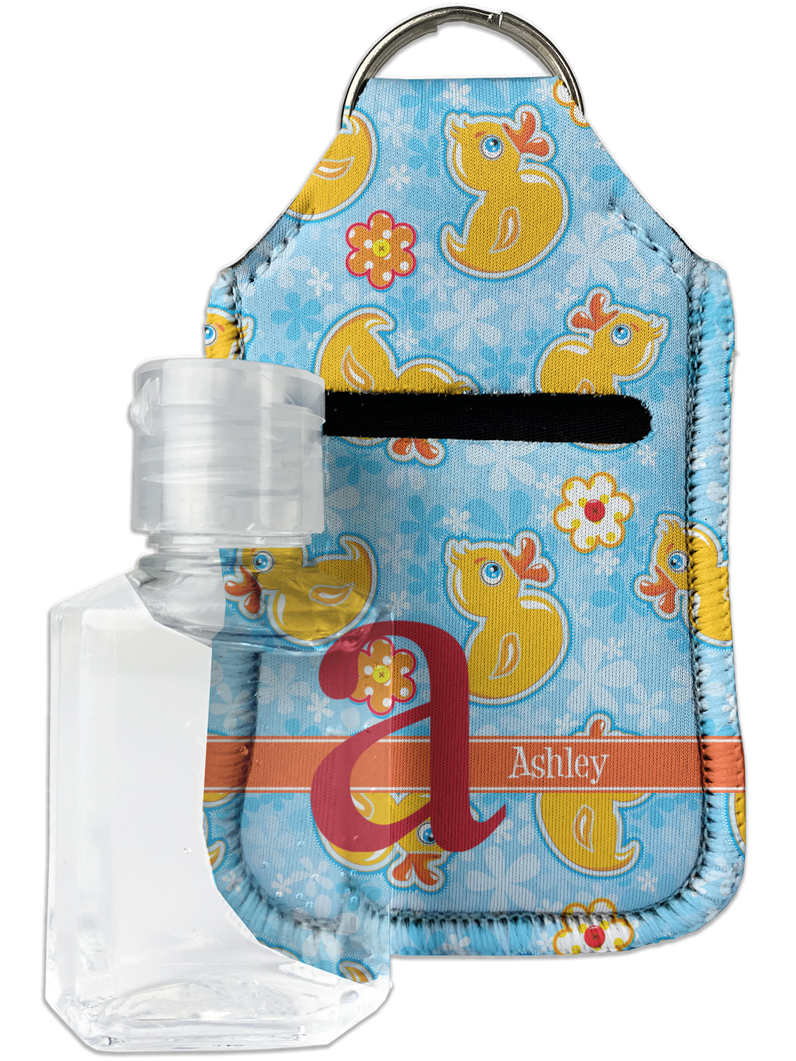 Each hand sanitizer holder comes with its own empty travel-sized, refillable hand sanitizer sure to fit snug in your customized sanitizer case! Our hand sanitizer cases are a durable, yet soft neoprene material sure to last any daily activities or travel agenda. Customize and personalize a hand sanitizer bottle holder with one of our two sizes - small (4.25" x 2.25") or large (5.5" x 2.5"). Each travel sanitizer holder comes with a keyring for attachment on bags, keys, or more!