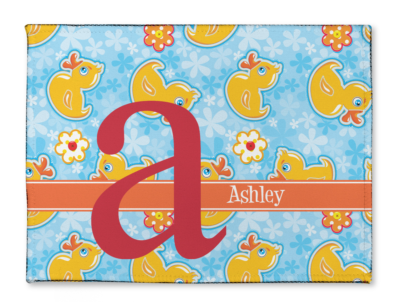 This duckie design is absolutely precious. The background is flowers in a lovely blue, while the foreground has duckies and flowers. The ducks and flowers look like they have been appliqued on to the fabric.