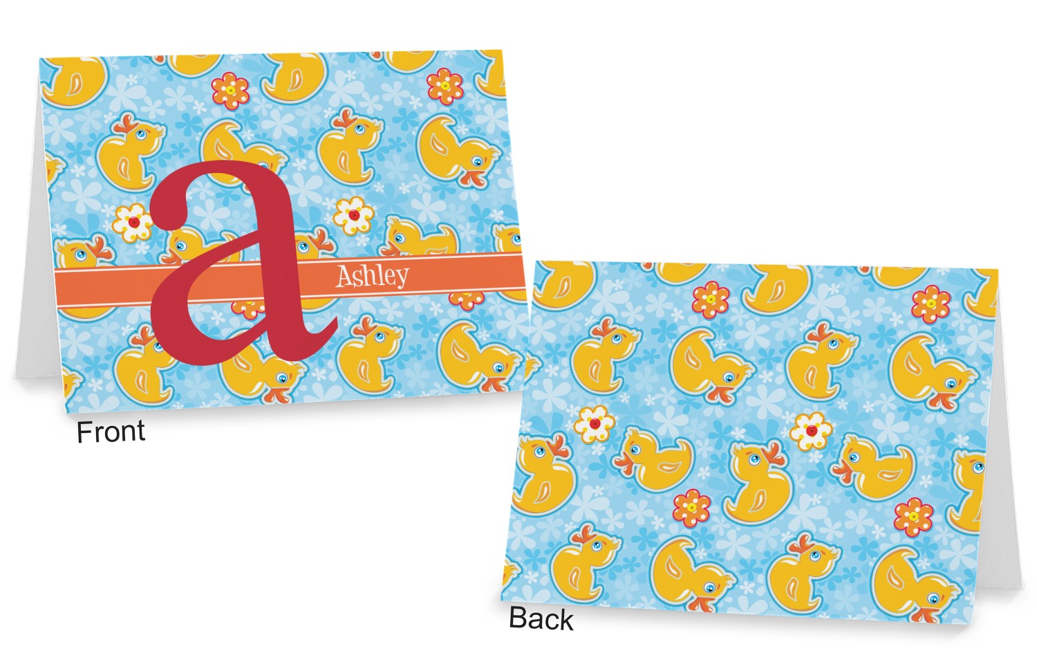 Our custom folded note cards are printed on premium 100lb. card stock and comes with white envelopes. The note card measure 5.5 by 4.25 inches and are blank on the inside for your handwritten message.