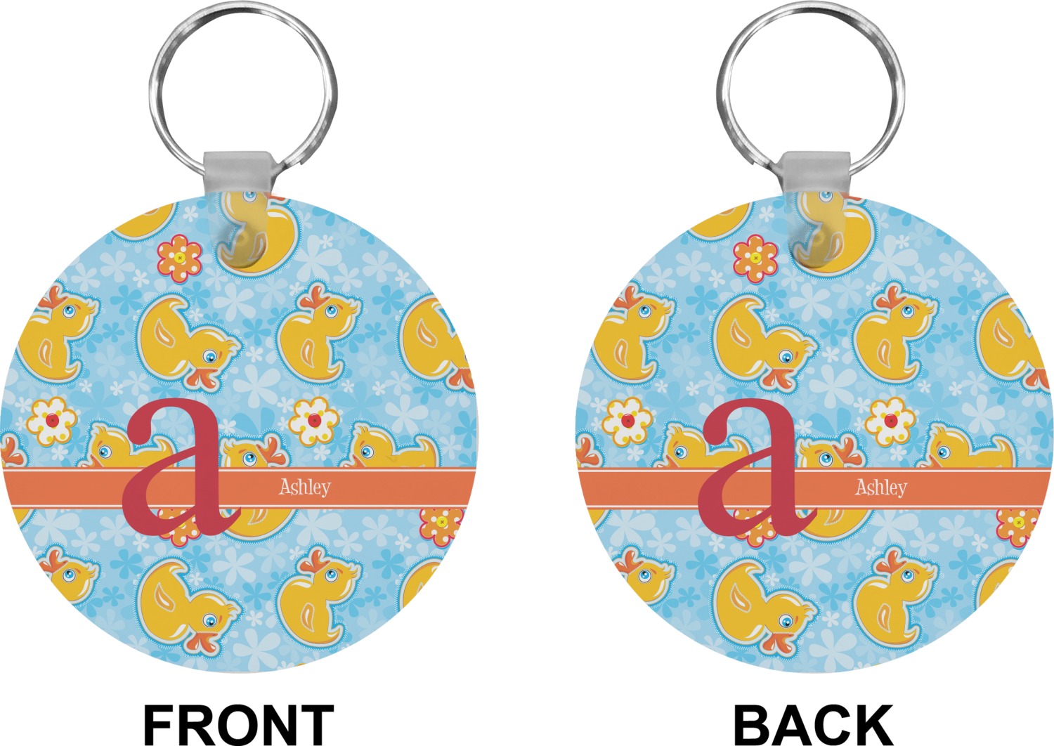 Our personalized keychains attach to the included metal, split key ring with a plastic, removable snap. Since a metal ring is included with your purchase, you have the liberty to keep your keys together on the ring, with or without your unique keychain. We offer this keychain in three different shapes: circle, heart, or diamond. We print your personalized design(s) on both sides of the key chain, and the surface has a glossy, reflective finish that only emphasizes your design. Each keychain is approximately 2.25 by 2.25 inches.
