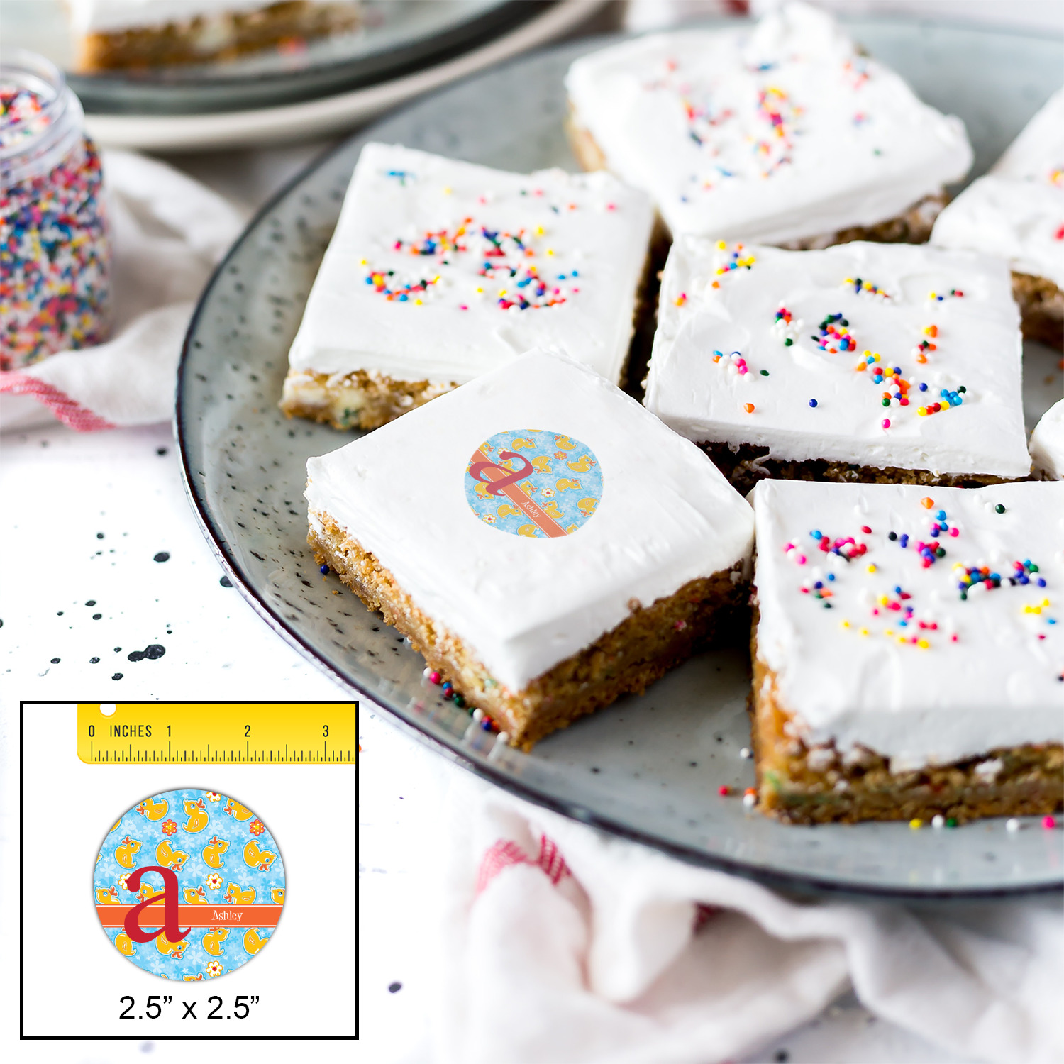 Your customized cookie toppers can be placed on top of any dessert with an icing top.The icing helps adhere the cookie topper to the dessert.