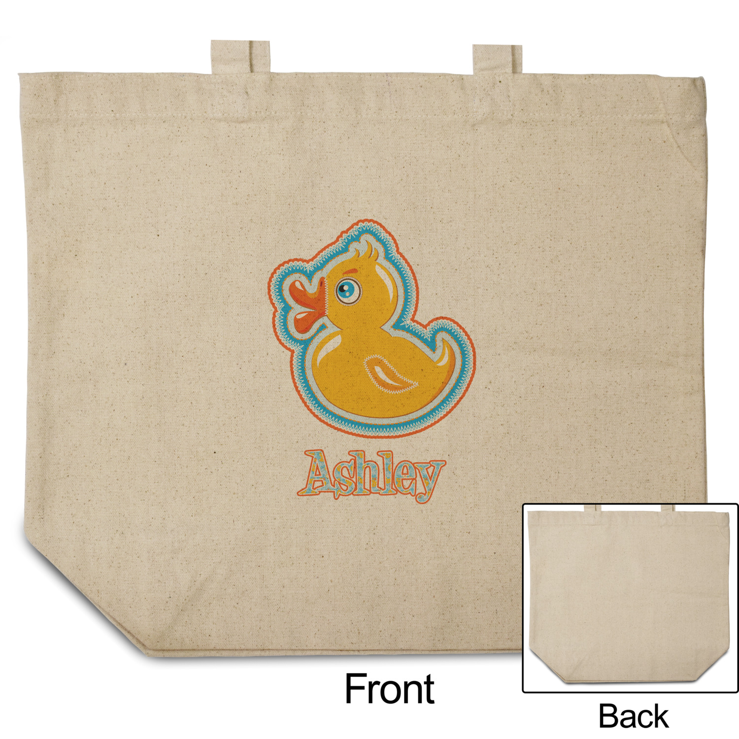 These cotton totes are washable and easy to care for, and they can be folded flat for storage. Your artwork, logo, or photo is printed in full color directly on the cotton tote in the front.