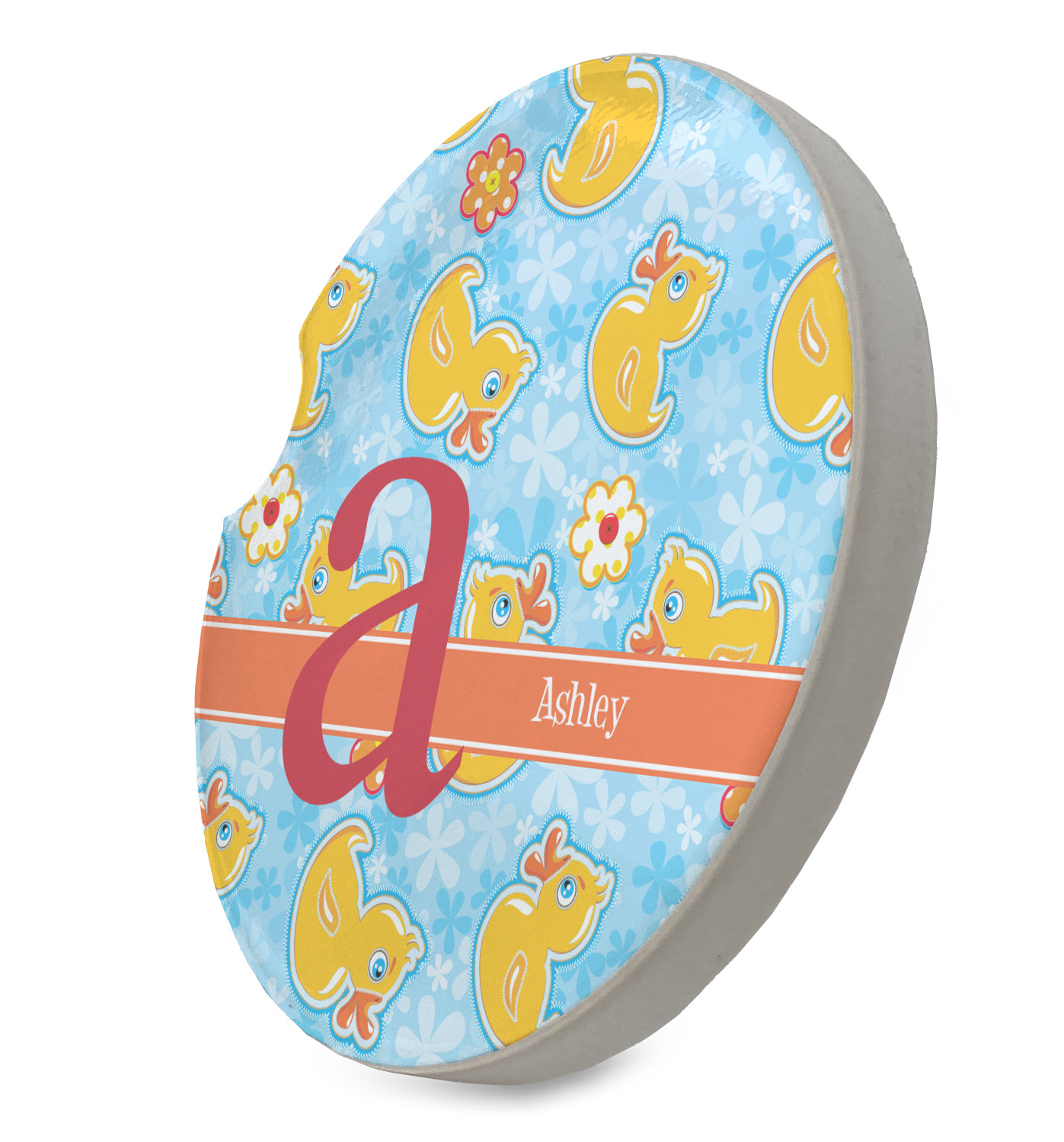 These sandstone coasters are round, robust, and feature a smoothed glossy side to exhibit your customized design. With a 2.5 inch diameter, these stone coasters will fit snugly inside most cup holders. This model also features a semi-circle shaped divot that allows for easy removal, despite the tight fit. You can purchase these car cup holder coasters in a pair, or singularly, depending on your needs.