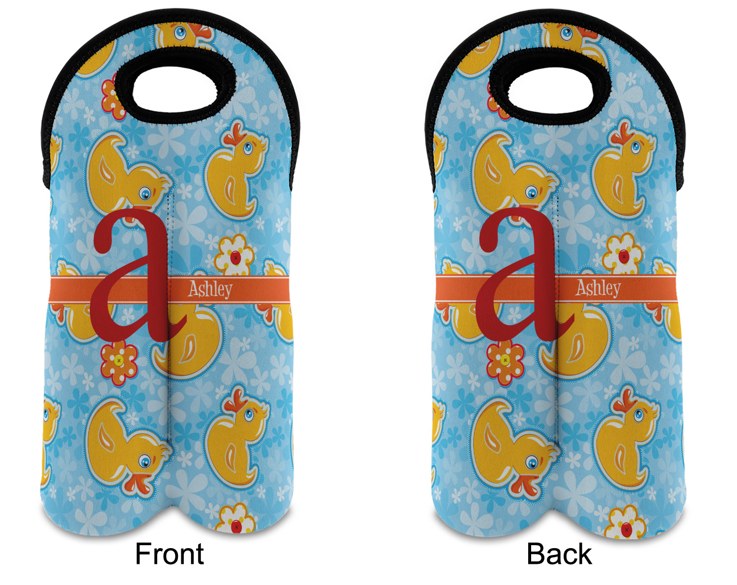 These tote bags are insulated to keep the bottles cold and have a stitched separation down the middle and double handles to keep the two bottles safe and secure during travels.