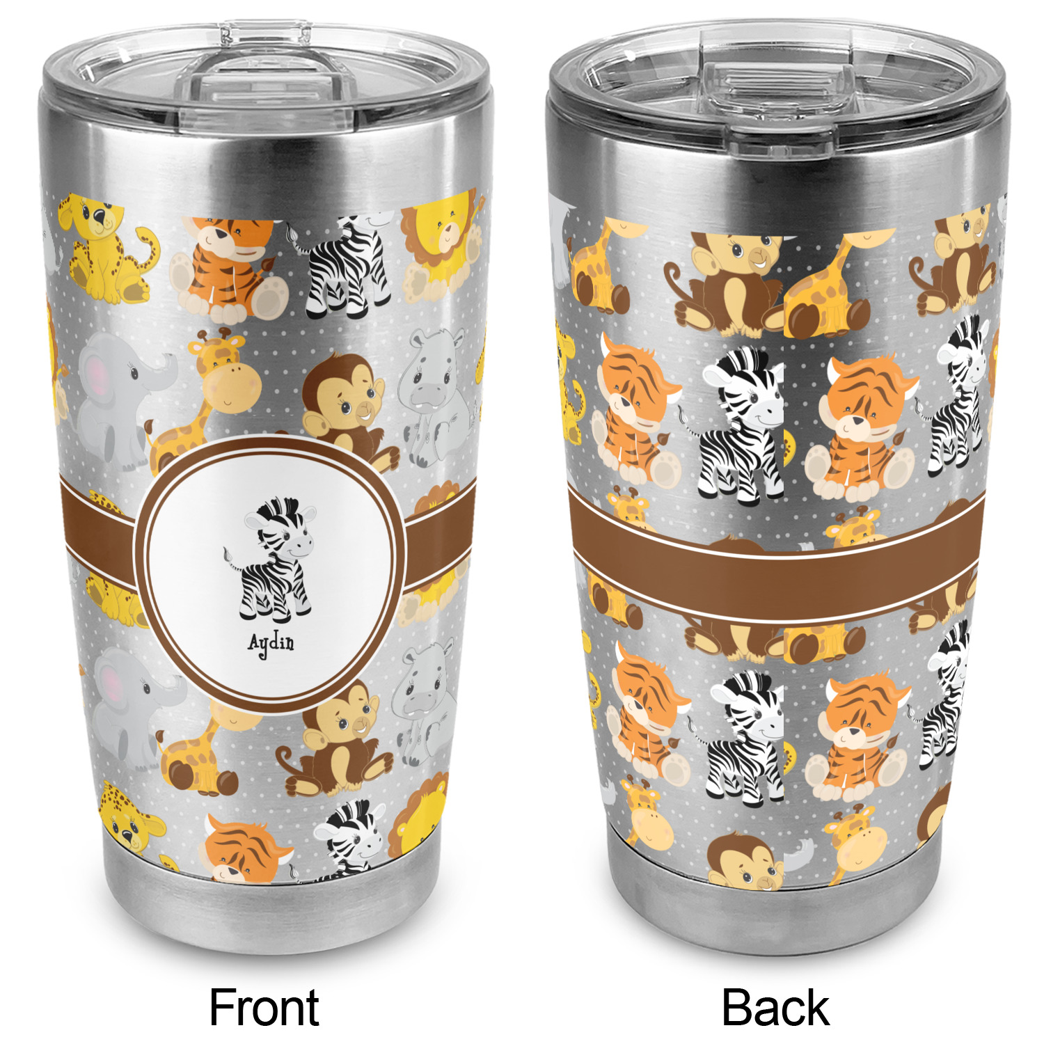 The design has classic ribbon along with a classic round label in a beautiful earth brown The label features a baby zebra in this design, however the choice of the baby animal is yours. You can select any of the baby animals to be featured on the label along with the child's name.