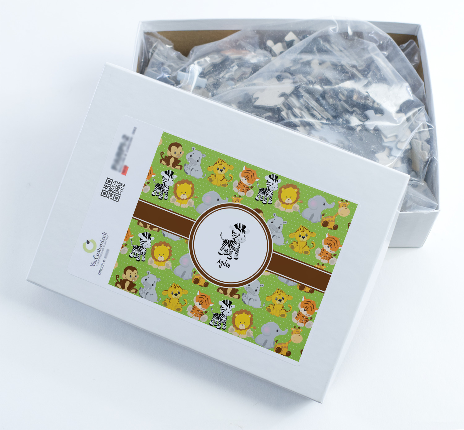 You can also upload your logo or art that you or your kids drew. To create more challenging jigsaw puzzles, you can create a pattern from with your logo or artwork. You can also add other elements such as text or personalization.