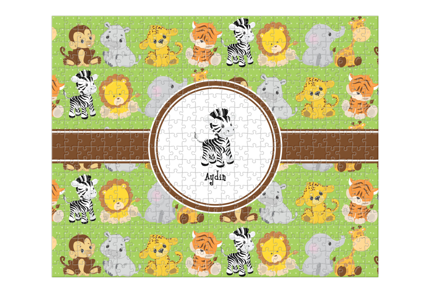 Depending on the look you are trying to achieve, you can add; a thematic pattern or background, with a photo in a frame and text or personalization to your puzzle. Basically if you can imagine it, you can design it!