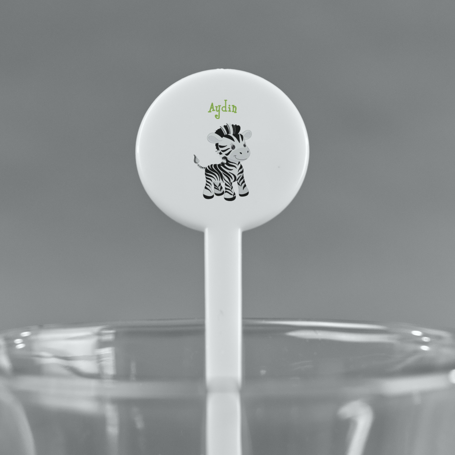 The design has classic ribbon along with a classic round label in a beautiful earth brown The label features a baby zebra in this design, however the choice of the baby animal is yours. You can select any of the baby animals to be featured on the label along with the child's name.