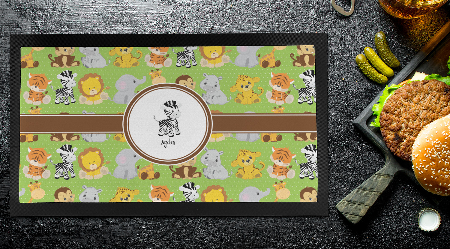This beautiful safari / jungle theme design would be just perfect for the baby or toddler in your life. The design has super cute and adorable baby animals - monkey, hippo, leopard, tiger, zebra, lion, elephant and giraffe. The baby animals are on a polka dotted background which is available in multiple colors including black or white. So you can keep it unisex with the light green, light yellow, white or black background, or you change it to baby blue for a boy, or baby pink or purple for a girl - the choice is yours!