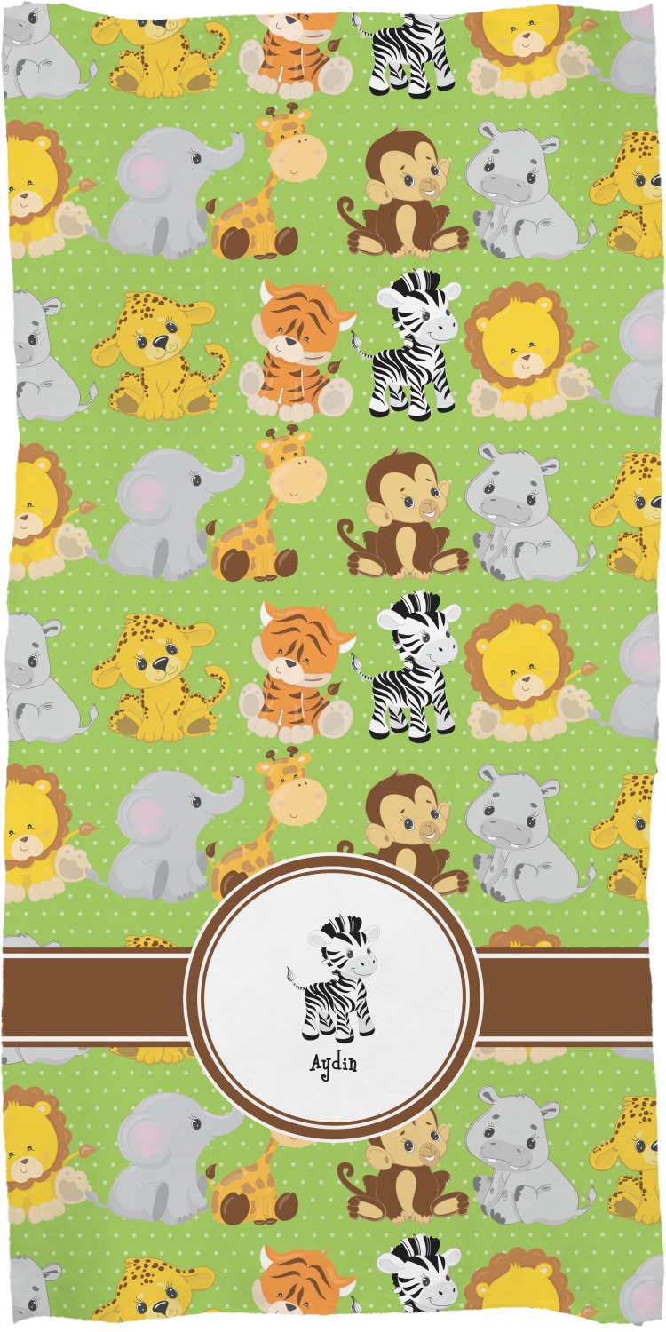 This beautiful safari / jungle theme design would be just perfect for the baby or toddler in your life. The design has super cute and adorable baby animals - monkey, hippo, leopard, tiger, zebra, lion, elephant and giraffe. The baby animals are on a polka dotted background which is available in multiple colors including black or white. So you can keep it unisex with the light green, light yellow, white or black background, or you change it to baby blue for a boy, or baby pink or purple for a girl - the choice is yours!