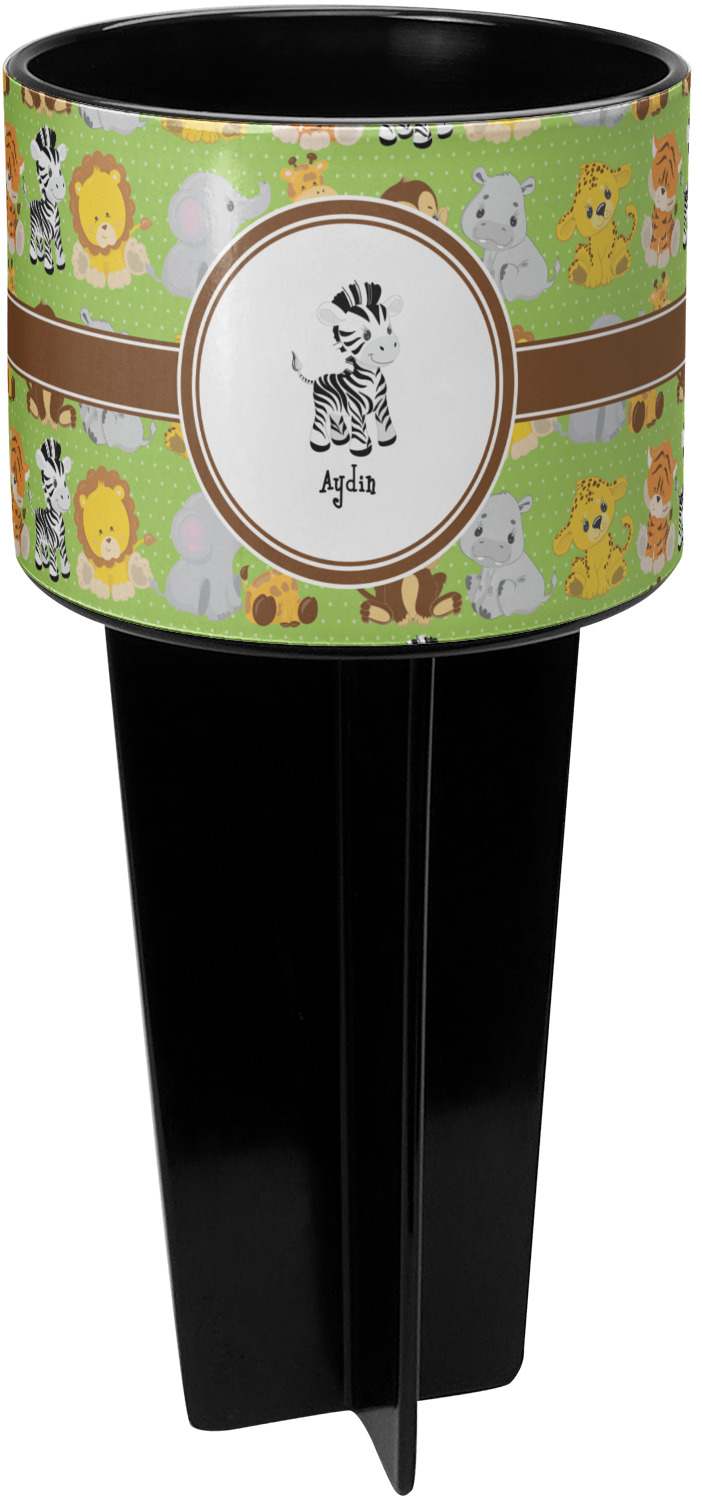 This cup holder has a large stake at its bottom that anchors it to the sand or ground below, while the cup holder rests above the stake. The entire drink holder is made of durable plastic and displays your customization around the cup holder portion. We sell these personalized beach spikers in two different colors: black and white.