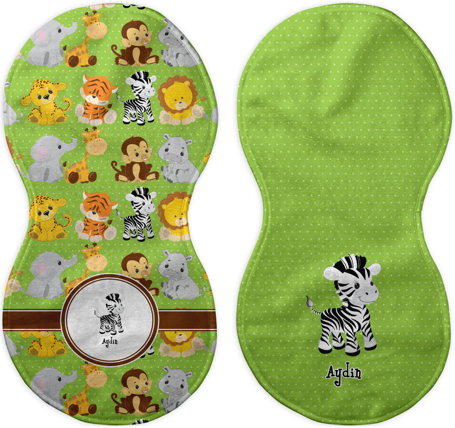 Choose your baby burp cloth from our two styles - Fleece (rectangular) or Microfiber Velour (peanut shape). The lightweight and absorbent design makes each burp cloth multipurpose; use them as a burp pad, a lap pad, a changing table, or a spare cloth to clean up any baby mess. Your customization is displayed across the front with baby-safe ink to ensure extra comfort with a white backing.