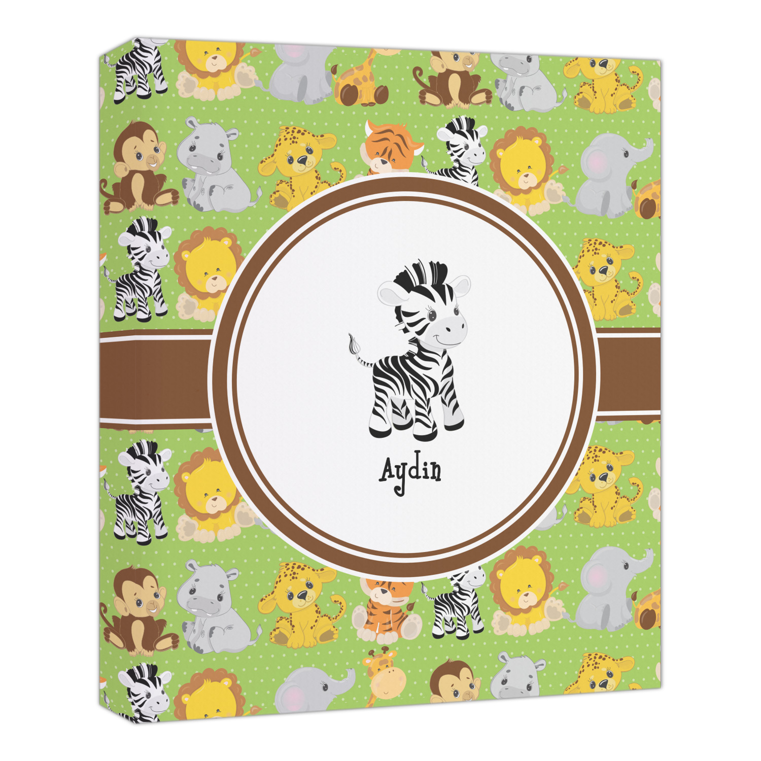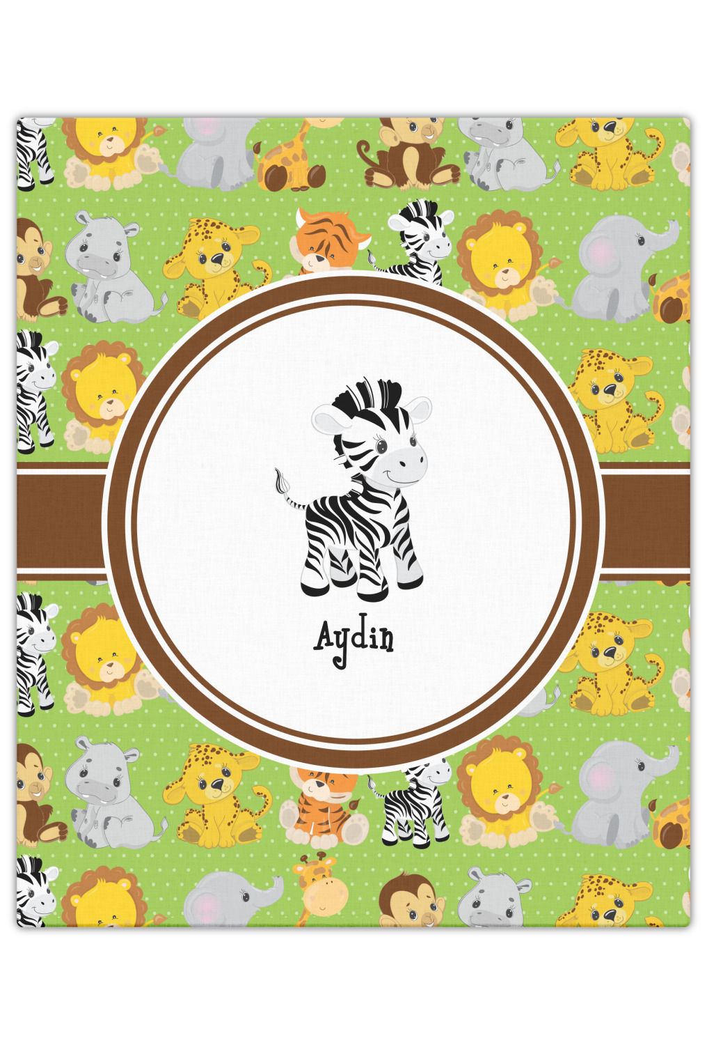 The design has classic ribbon along with a classic round label in a beautiful earth brown The label features a baby zebra in this design, however the choice of the baby animal is yours. You can select any of the baby animals to be featured on the label along with the child's name.