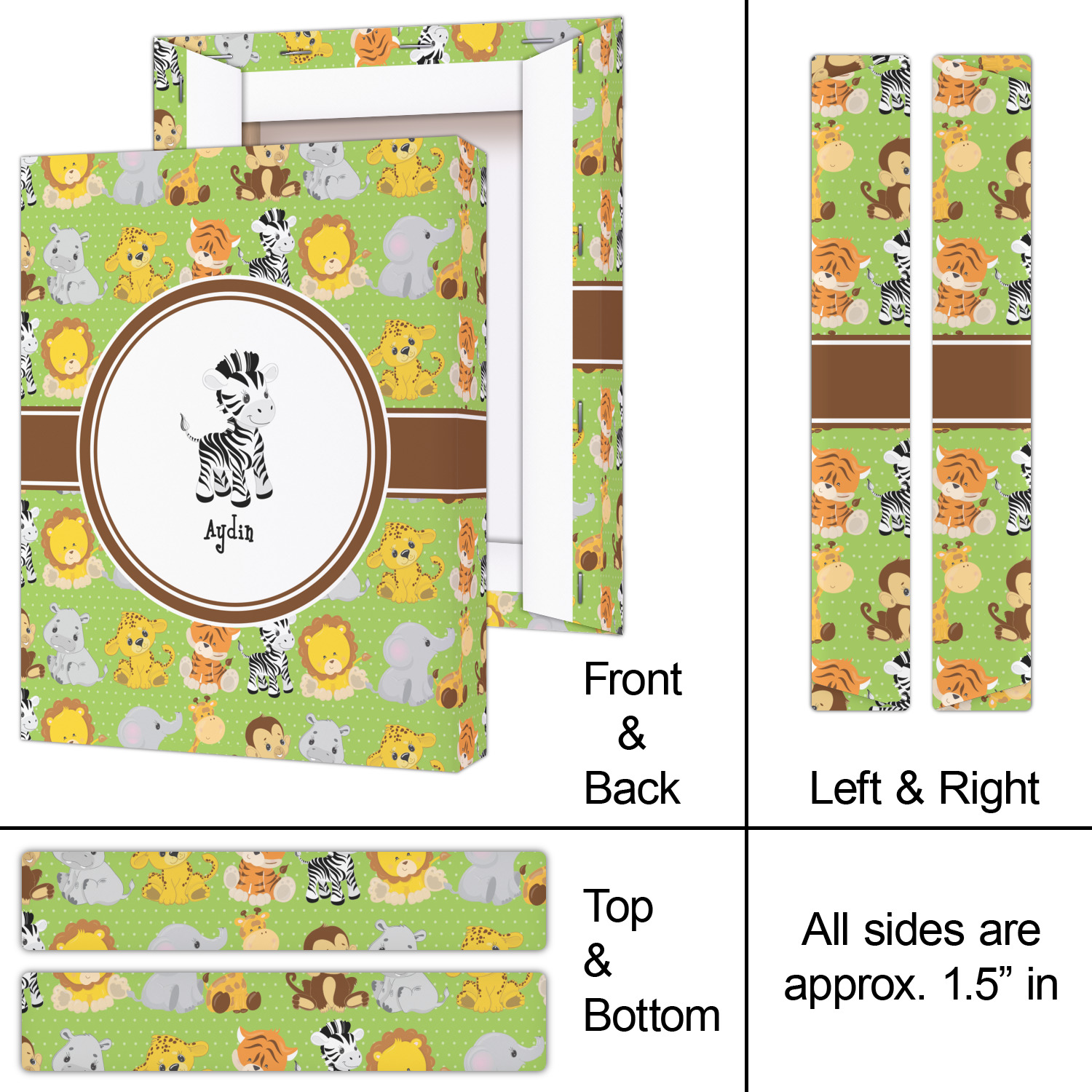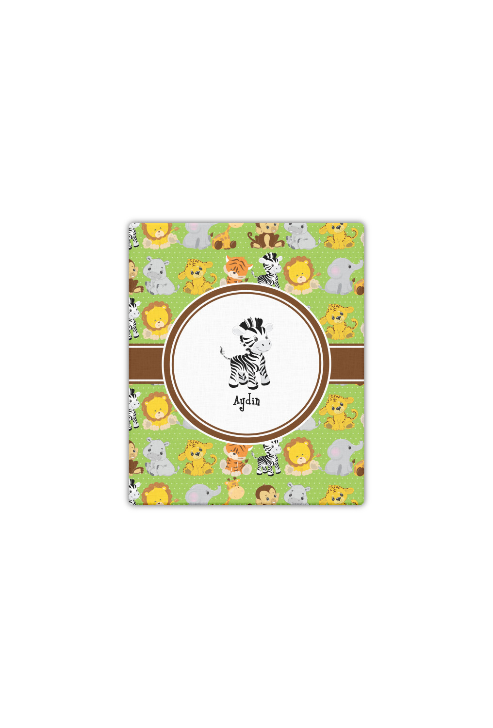 The design has classic ribbon along with a classic round label in a beautiful earth brown The label features a baby zebra in this design, however the choice of the baby animal is yours. You can select any of the baby animals to be featured on the label along with the child's name.