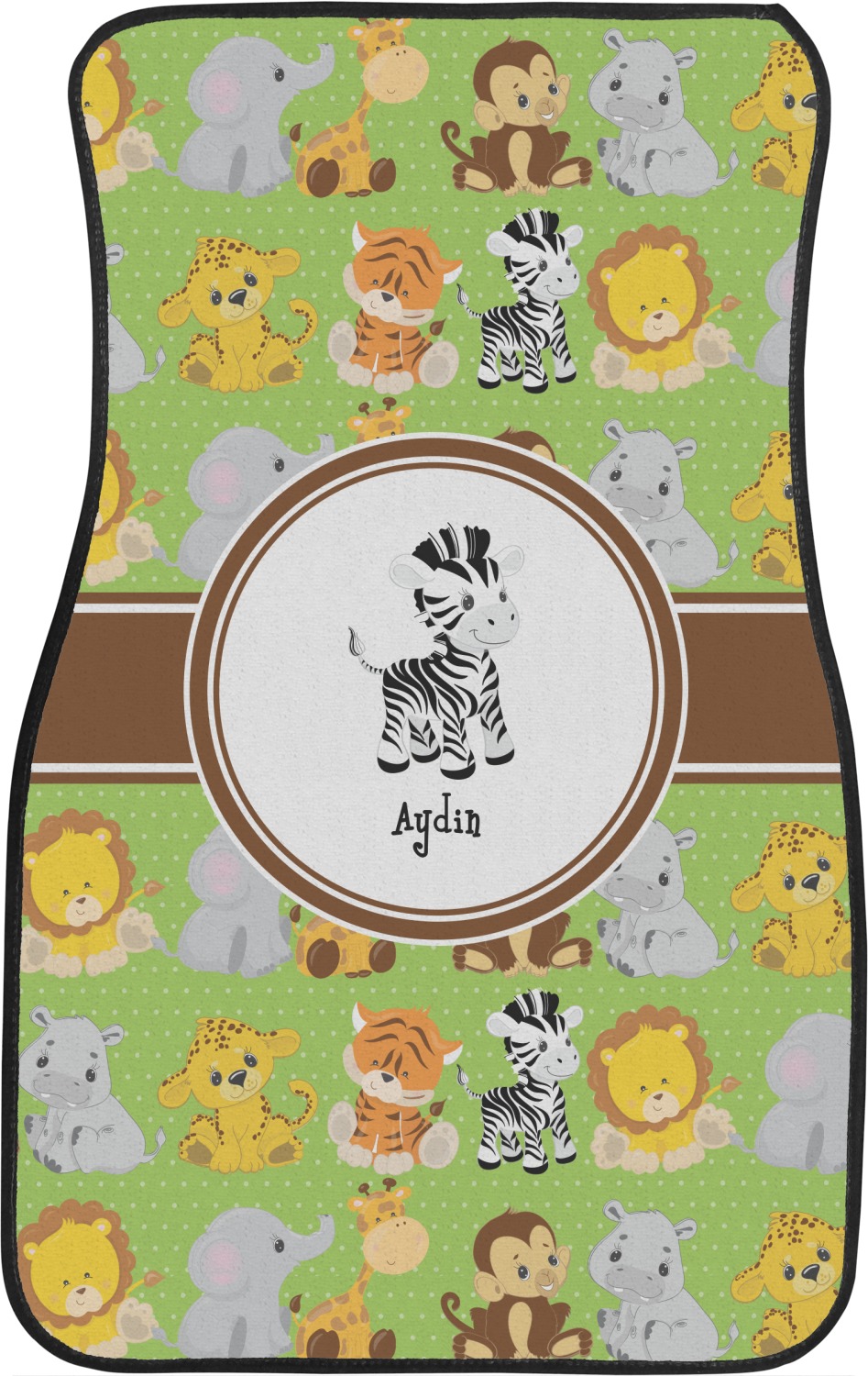 The design has classic ribbon along with a classic round label in a beautiful earth brown The label features a baby zebra in this design, however the choice of the baby animal is yours. You can select any of the baby animals to be featured on the label along with the child's name.