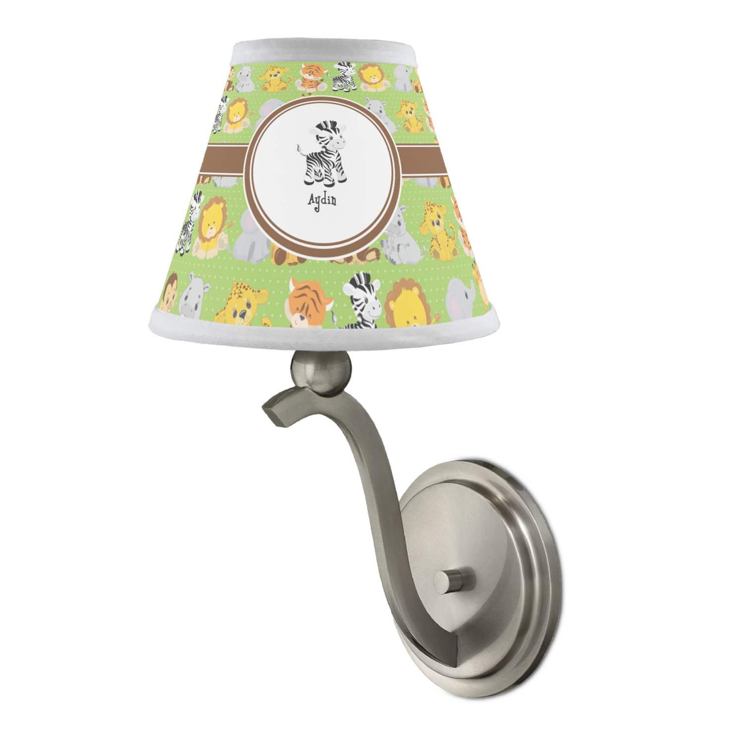 The design has classic ribbon along with a classic round label in a beautiful earth brown The label features a baby zebra in this design, however the choice of the baby animal is yours. You can select any of the baby animals to be featured on the label along with the child's name.