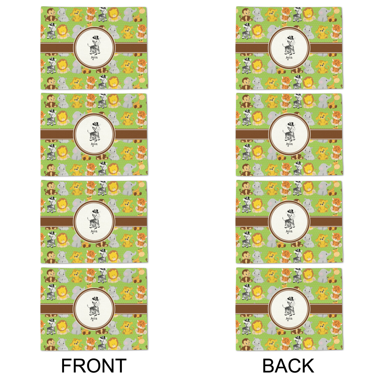 The design has classic ribbon along with a classic round label in a beautiful earth brown The label features a baby zebra in this design, however the choice of the baby animal is yours. You can select any of the baby animals to be featured on the label along with the child's name.