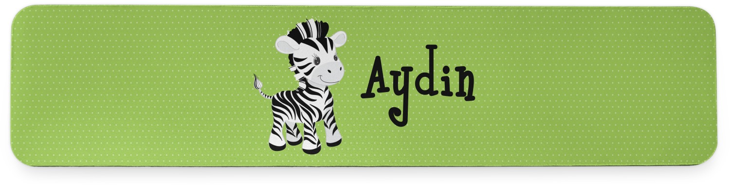 The design has classic ribbon along with a classic round label in a beautiful earth brown The label features a baby zebra in this design, however the choice of the baby animal is yours. You can select any of the baby animals to be featured on the label along with the child's name.