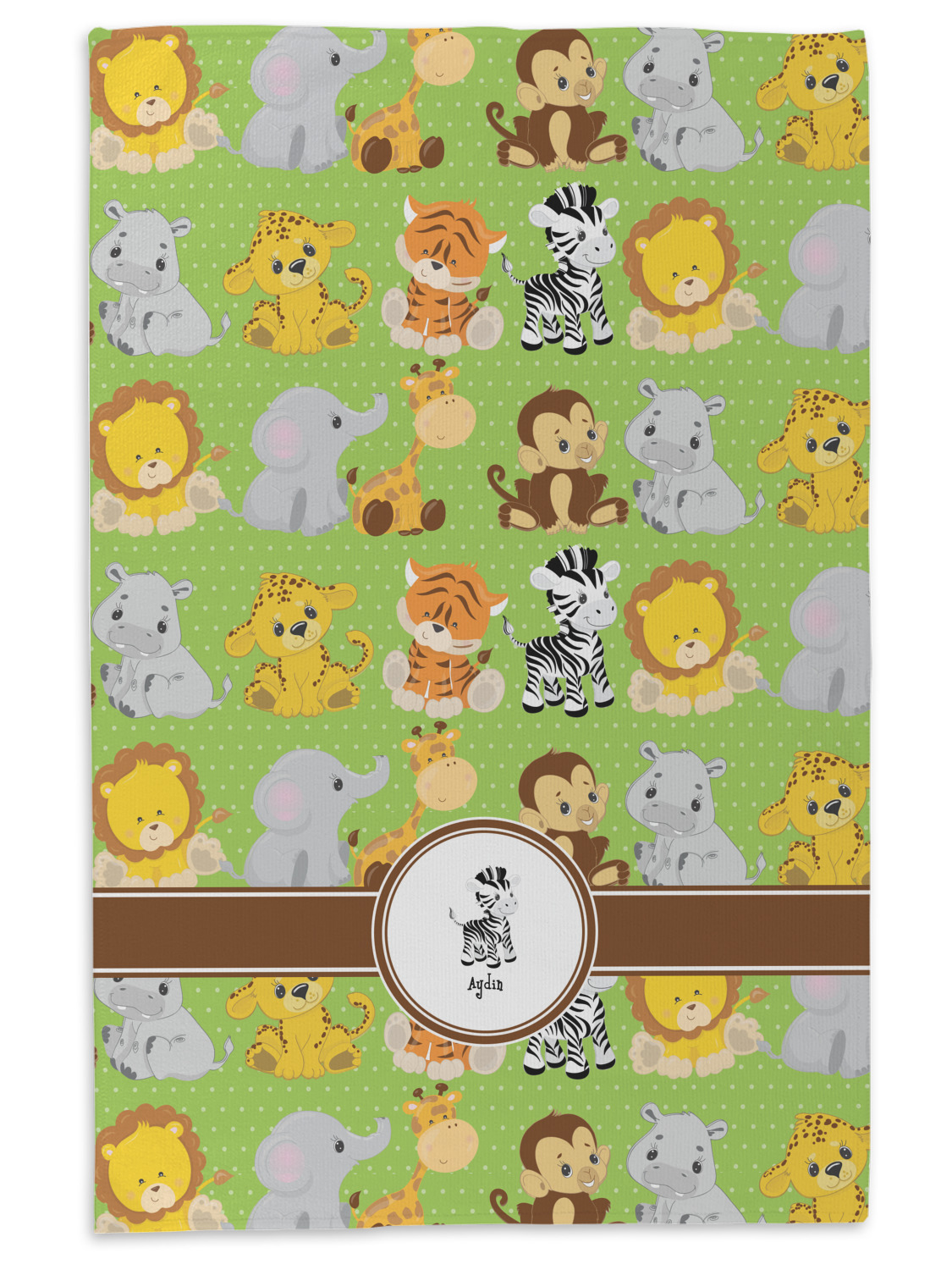 This beautiful safari / jungle theme design would be just perfect for the baby or toddler in your life. The design has super cute and adorable baby animals - monkey, hippo, leopard, tiger, zebra, lion, elephant and giraffe. The baby animals are on a polka dotted background which is available in multiple colors including black or white. So you can keep it unisex with the light green, light yellow, white or black background, or you change it to baby blue for a boy, or baby pink or purple for a girl - the choice is yours!
