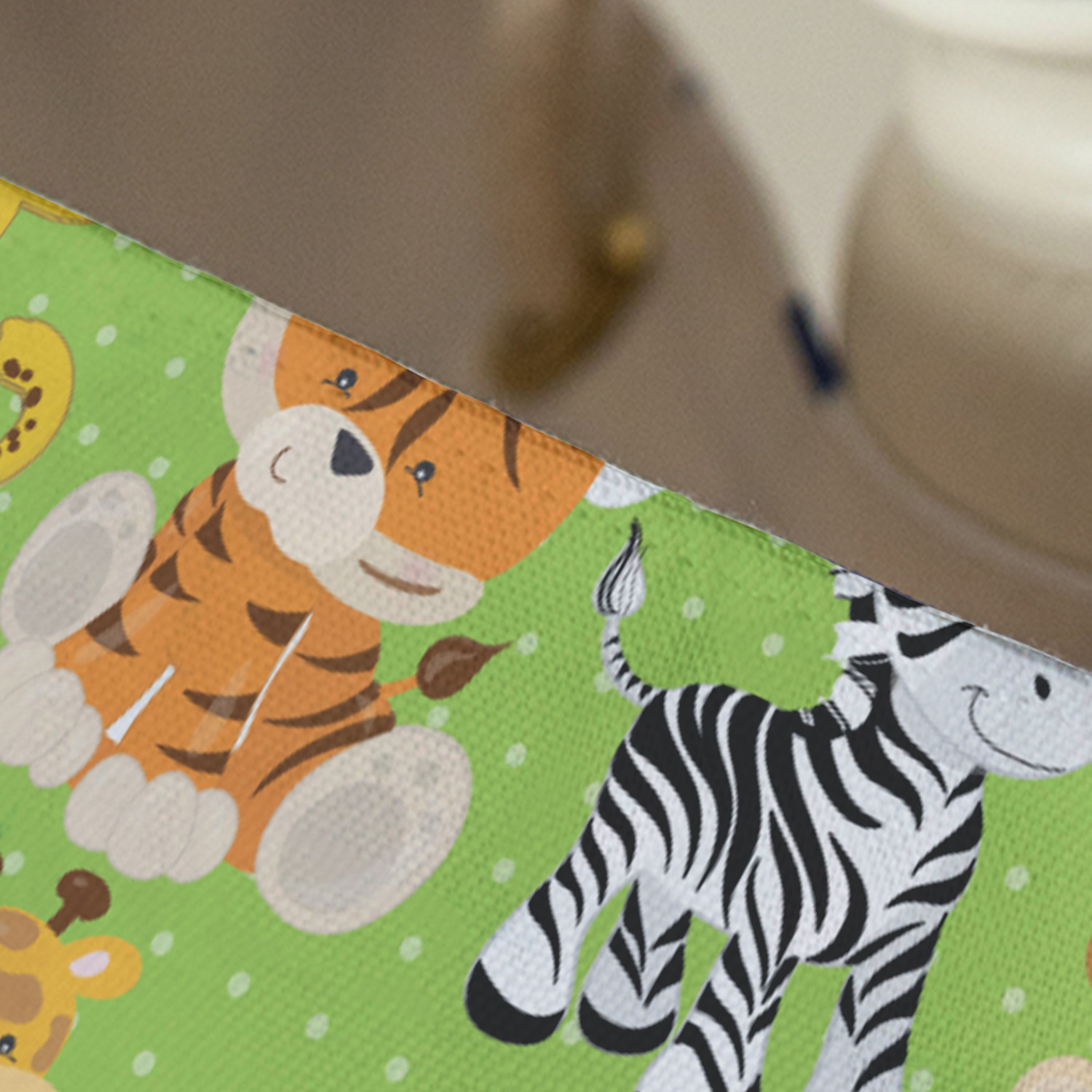 This beautiful safari / jungle theme design would be just perfect for the baby or toddler in your life. The design has super cute and adorable baby animals - monkey, hippo, leopard, tiger, zebra, lion, elephant and giraffe. The baby animals are on a polka dotted background which is available in multiple colors including black or white. So you can keep it unisex with the light green, light yellow, white or black background, or you change it to baby blue for a boy, or baby pink or purple for a girl - the choice is yours!