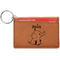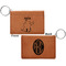 These ID wallet keychains features three pockets on the inside to accommodate your ID and your most frequently used cards. Another pocket occupies the front of the wallet's exterior, and can hold some cash or another card. The wallet is accompanied by a thick metal ring for easy attachment to a belt clip or purse. Each card holder keychain measures at 4.25 by 3 inches and is a beautiful, cognac, medium-brown shade. The personalized monogram, font, or graphic of your choosing is laser engraved into the surface of the wallet, creating a black imprint. We sell these ID wallets in two models: single sided and double sided engraving.