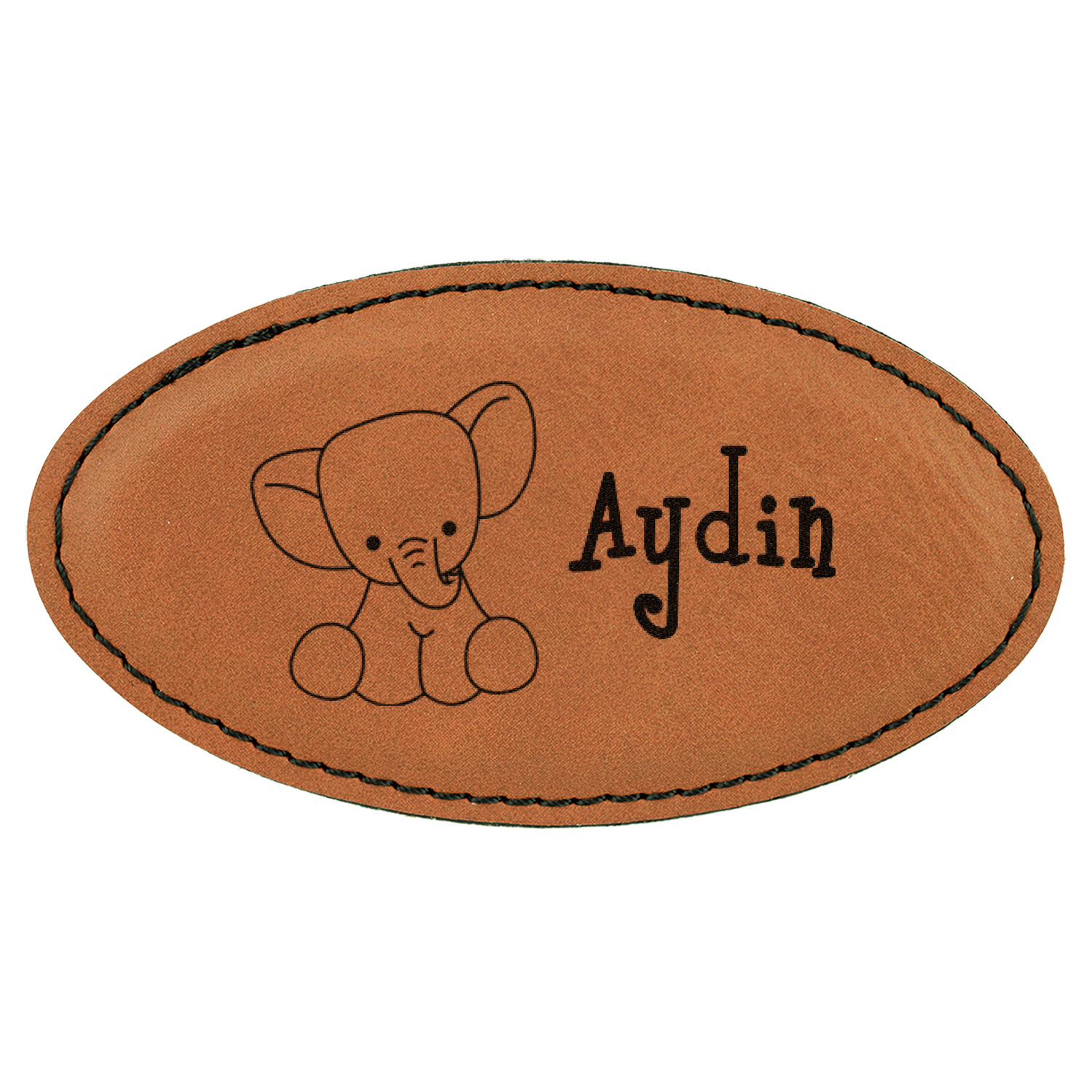 Made from a cognac-brown leatherette into an oval shape, these custom name badges measure at around 3.25" x 1.75". To add the suave appearance of this custom badge, a fine black stitching lines the edges or the badge itself. Your customized design is laser-engraved onto the surface of the leatherette. Accompanying your purchase is a removable magnet strip that can be used to secure the engraved name tag to any shirt, dress, or jacket.