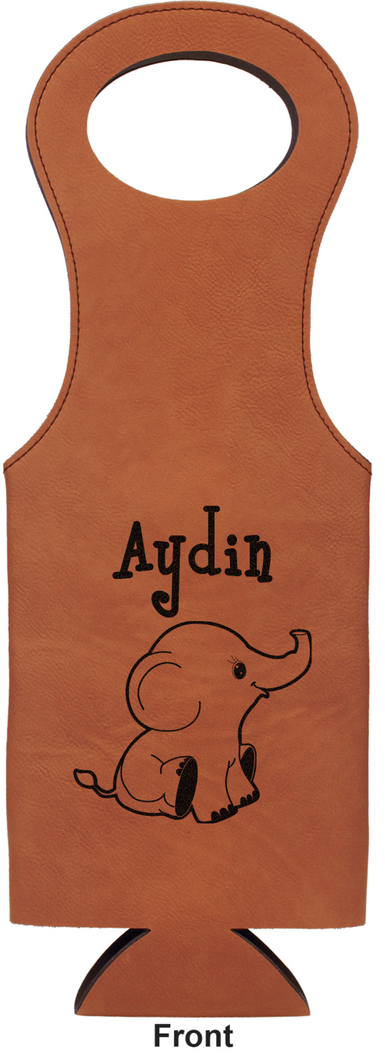 This wine carrier is made from a stunning leatherette, in a cognac-brown color. Strong, black stitching lines the sides of your wine bottle bag and provides extra durability. The interior is lined with a padded, black material to allow for a snug fit once your bottle is placed inside. At the top of this wine gift bag, you'll find two oval shaped handles that elegantly complements the rest of the bag's style. We provide you with the option of laser-engraving the front, or the front and back of your new personalized wine bag!