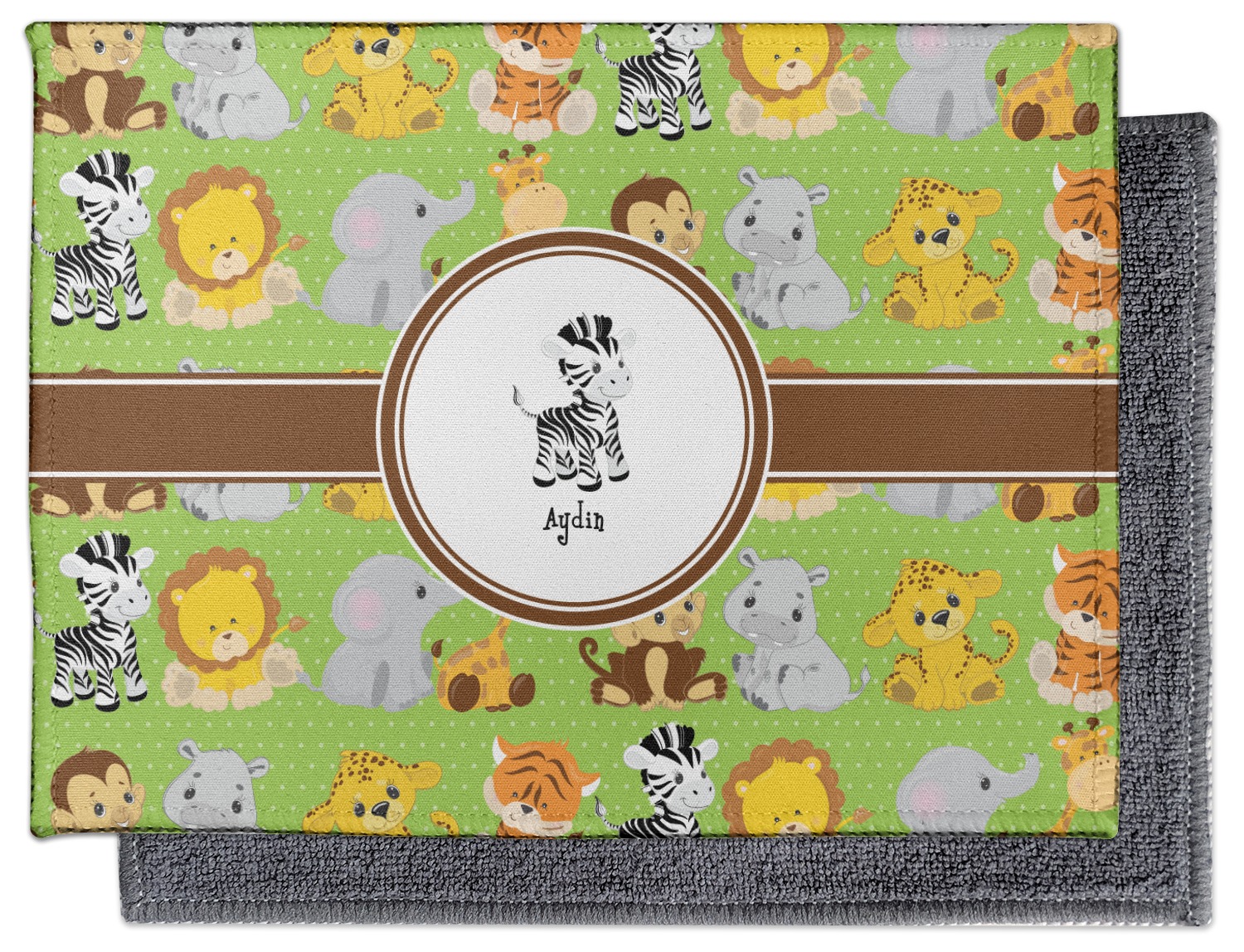 This beautiful safari / jungle theme design would be just perfect for the baby or toddler in your life. The design has super cute and adorable baby animals - monkey, hippo, leopard, tiger, zebra, lion, elephant and giraffe. The baby animals are on a polka dotted background which is available in multiple colors including black or white. So you can keep it unisex with the light green, light yellow, white or black background, or you change it to baby blue for a boy, or baby pink or purple for a girl - the choice is yours!