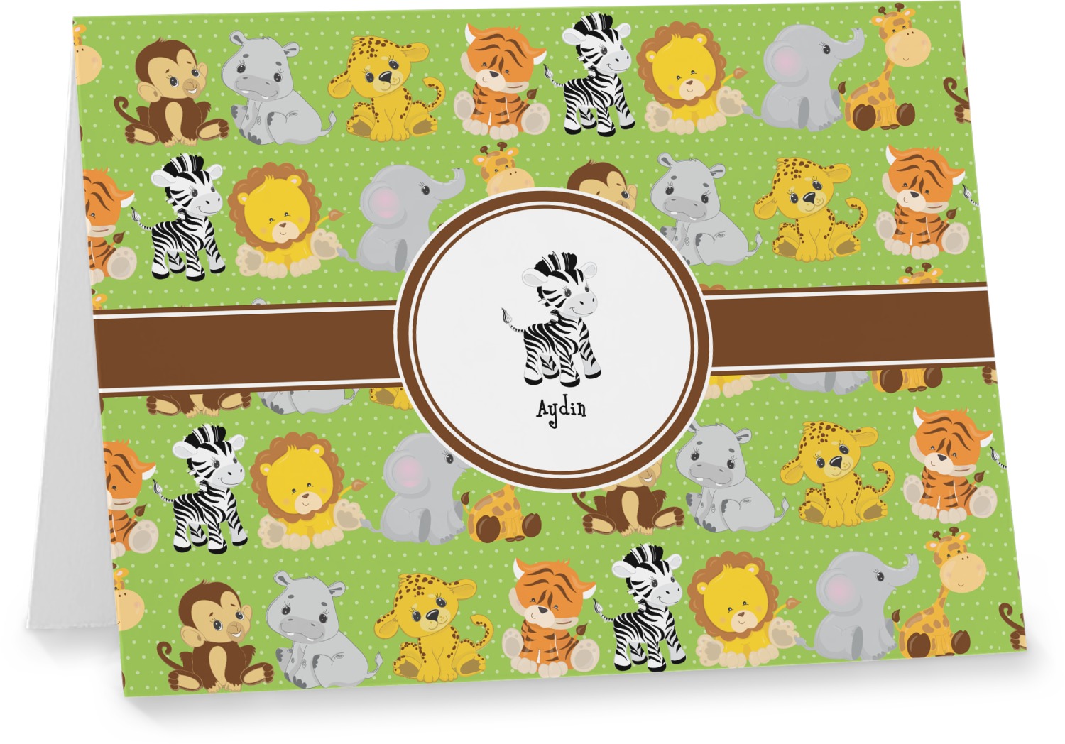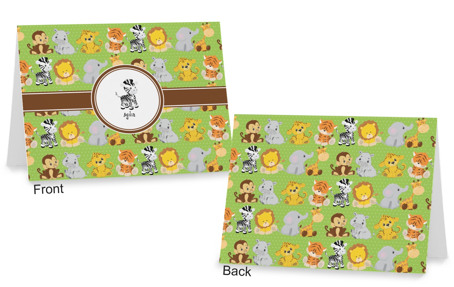Our custom folded note cards are printed on premium 100lb. card stock and comes with white envelopes. The note card measure 5.5 by 4.25 inches and are blank on the inside for your handwritten message.