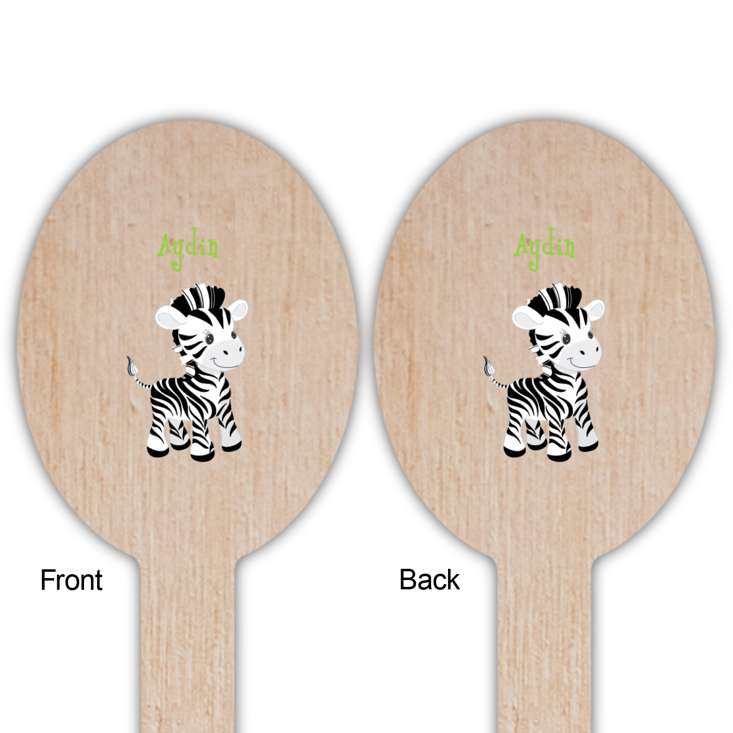 The design has classic ribbon along with a classic round label in a beautiful earth brown The label features a baby zebra in this design, however the choice of the baby animal is yours. You can select any of the baby animals to be featured on the label along with the child's name.