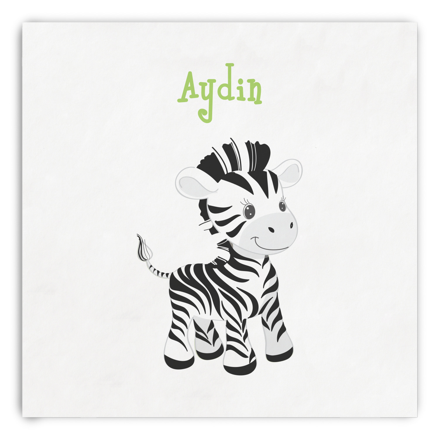 The design has classic ribbon along with a classic round label in a beautiful earth brown The label features a baby zebra in this design, however the choice of the baby animal is yours. You can select any of the baby animals to be featured on the label along with the child's name.