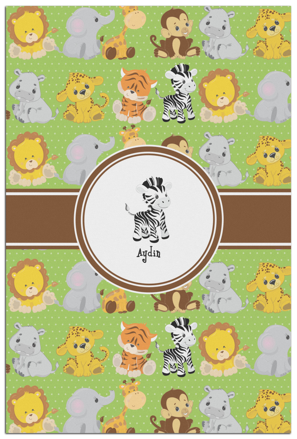 This beautiful safari / jungle theme design would be just perfect for the baby or toddler in your life. The design has super cute and adorable baby animals - monkey, hippo, leopard, tiger, zebra, lion, elephant and giraffe. The baby animals are on a polka dotted background which is available in multiple colors including black or white. So you can keep it unisex with the light green, light yellow, white or black background, or you change it to baby blue for a boy, or baby pink or purple for a girl - the choice is yours!