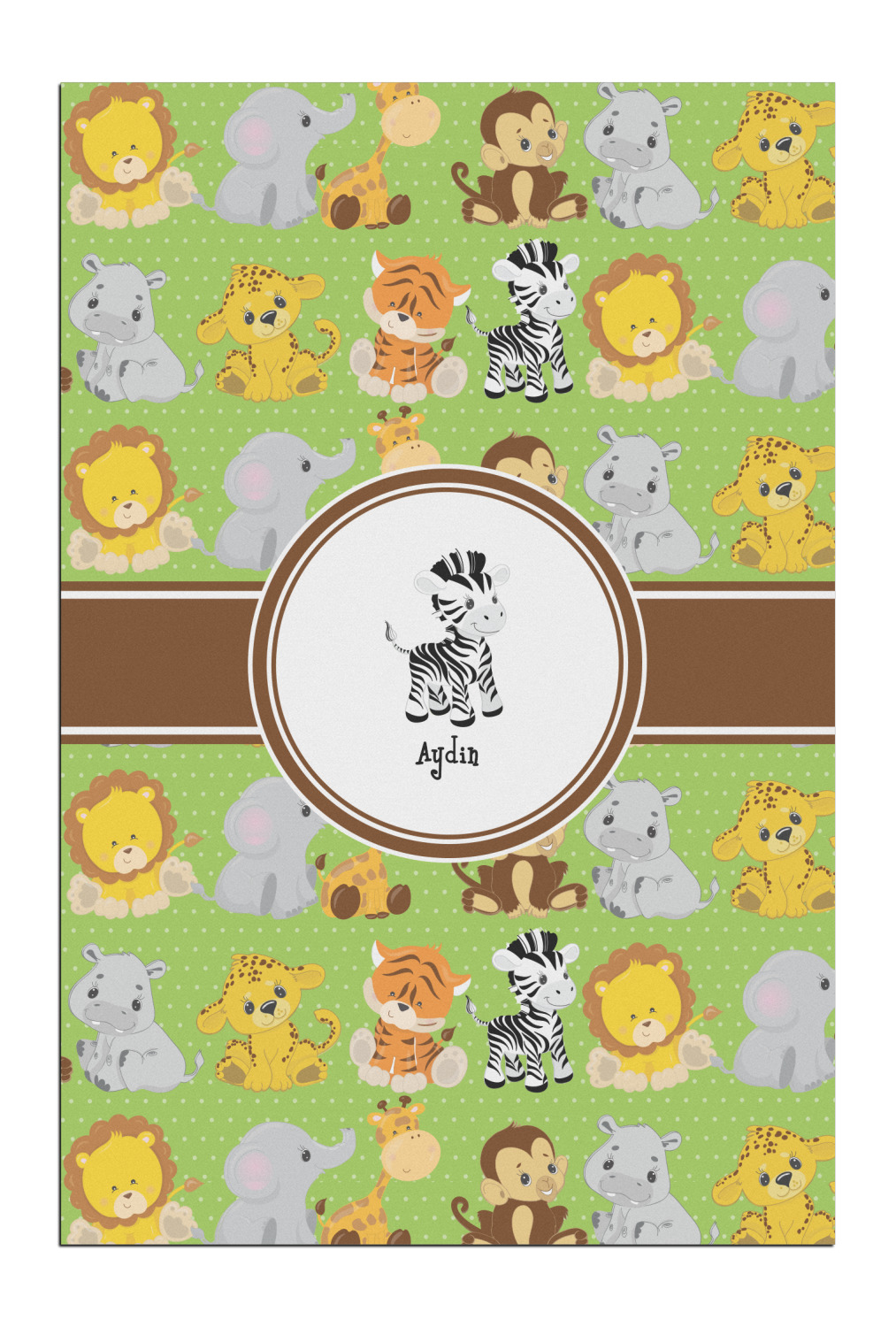 The design has classic ribbon along with a classic round label in a beautiful earth brown The label features a baby zebra in this design, however the choice of the baby animal is yours. You can select any of the baby animals to be featured on the label along with the child's name.
