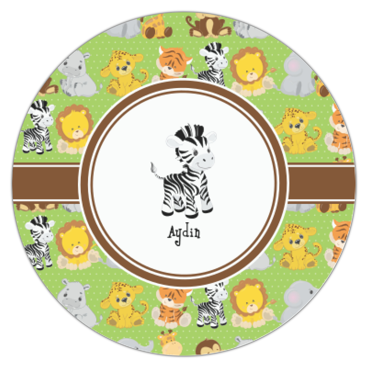 The design has classic ribbon along with a classic round label in a beautiful earth brown The label features a baby zebra in this design, however the choice of the baby animal is yours. You can select any of the baby animals to be featured on the label along with the child's name.