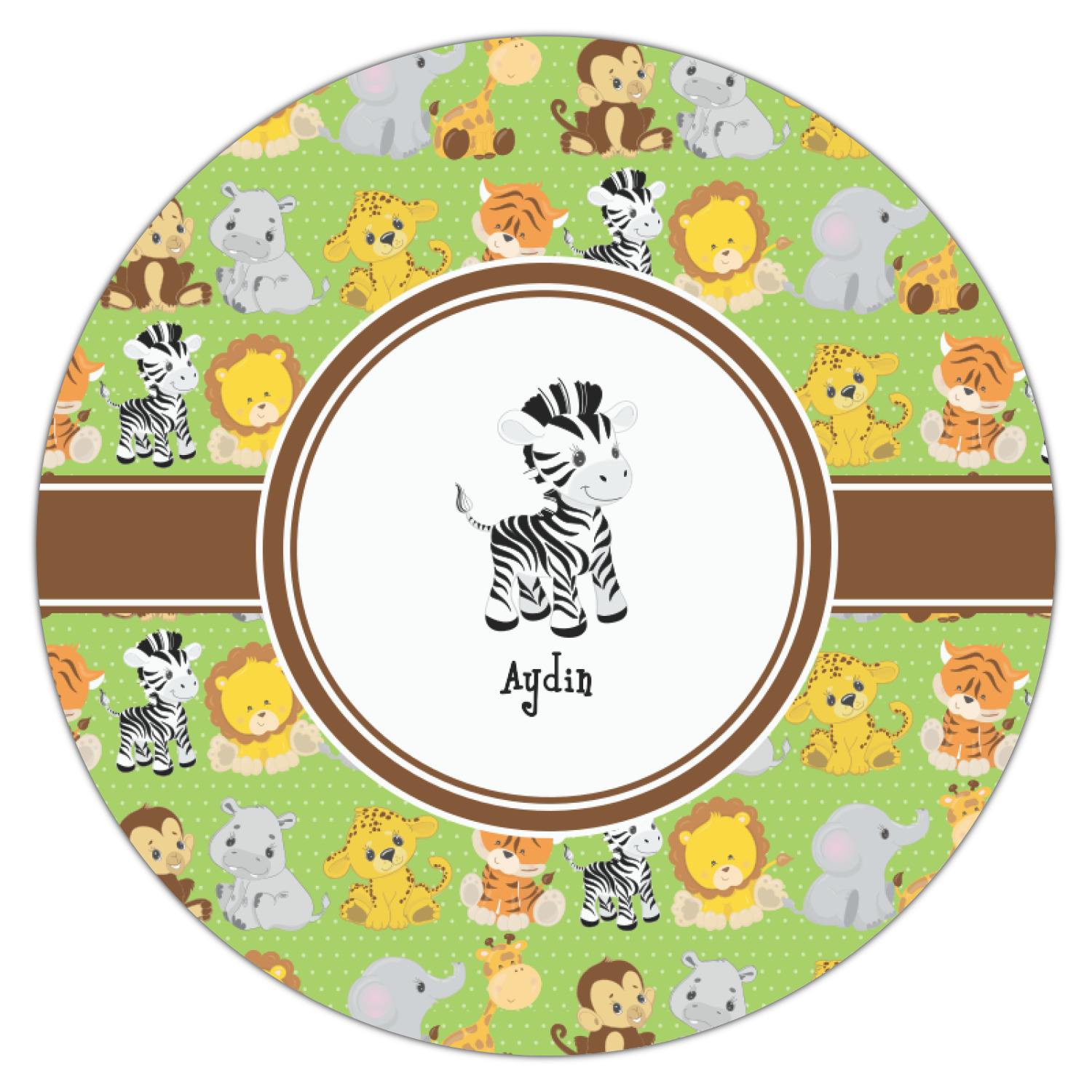 The design has classic ribbon along with a classic round label in a beautiful earth brown The label features a baby zebra in this design, however the choice of the baby animal is yours. You can select any of the baby animals to be featured on the label along with the child's name.