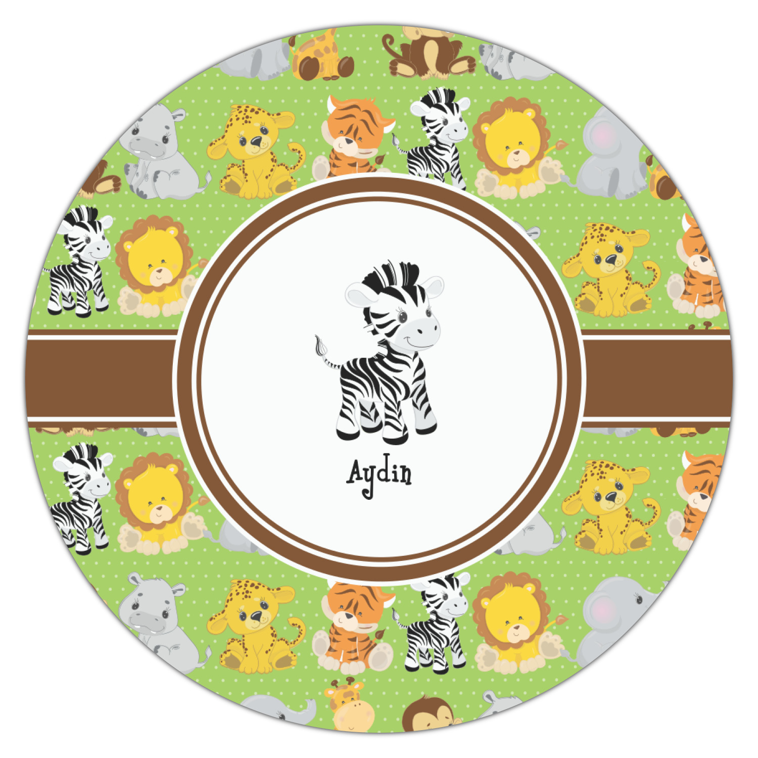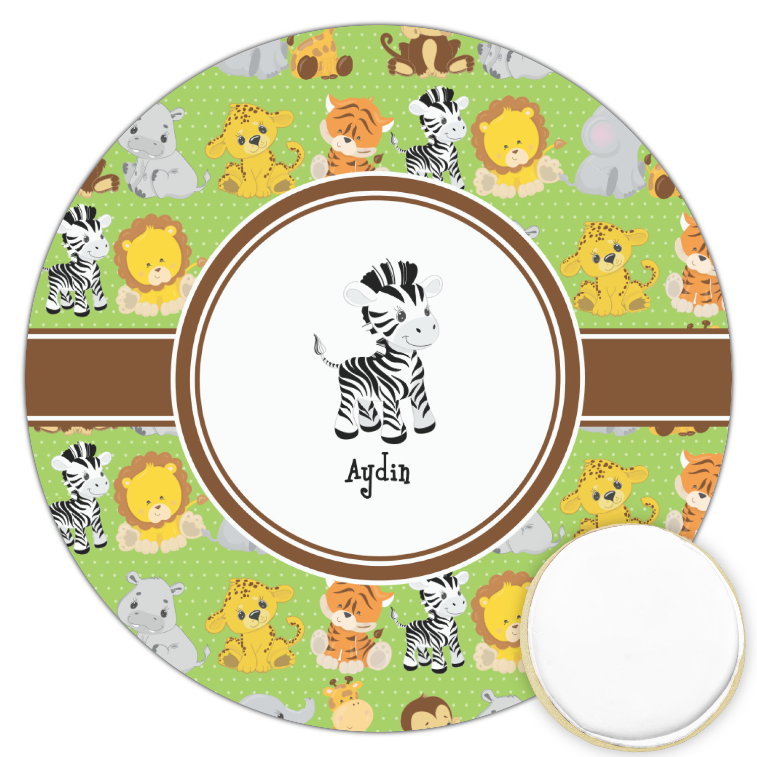 The design has classic ribbon along with a classic round label in a beautiful earth brown The label features a baby zebra in this design, however the choice of the baby animal is yours. You can select any of the baby animals to be featured on the label along with the child's name.