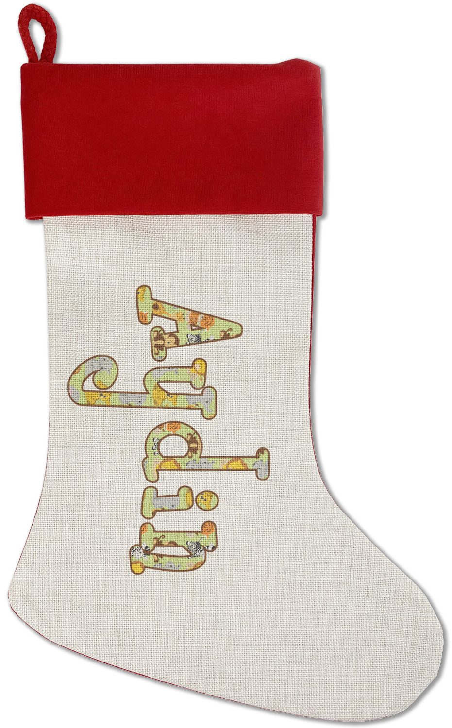 Our classic red stockings are made from a soft, yet durable polyester material perfect for any stocking stuffer! The front of our Christmas stockings have a linen front that boldly displays your custom design accented with a lush red cuff resting all around the stocking. Each stocking is approximately 18x12 with a durable cotton rope loop for hanging.