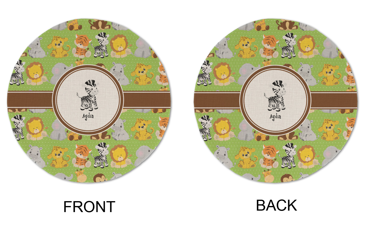 The design has classic ribbon along with a classic round label in a beautiful earth brown The label features a baby zebra in this design, however the choice of the baby animal is yours. You can select any of the baby animals to be featured on the label along with the child's name.