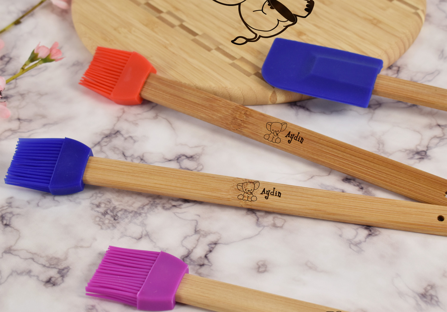 Available in 3 colors to match your kitchen décor - blue, purple and red - you are sure to find an option to perfectly fit into your kitchen tool selection. Choose your color then choose what you would like engraved onto the handle of your basting brush and we will laser engrave it for you to ensure it won't leave your kitchen space!